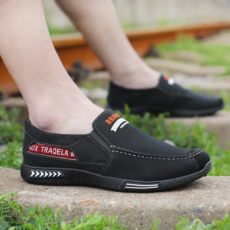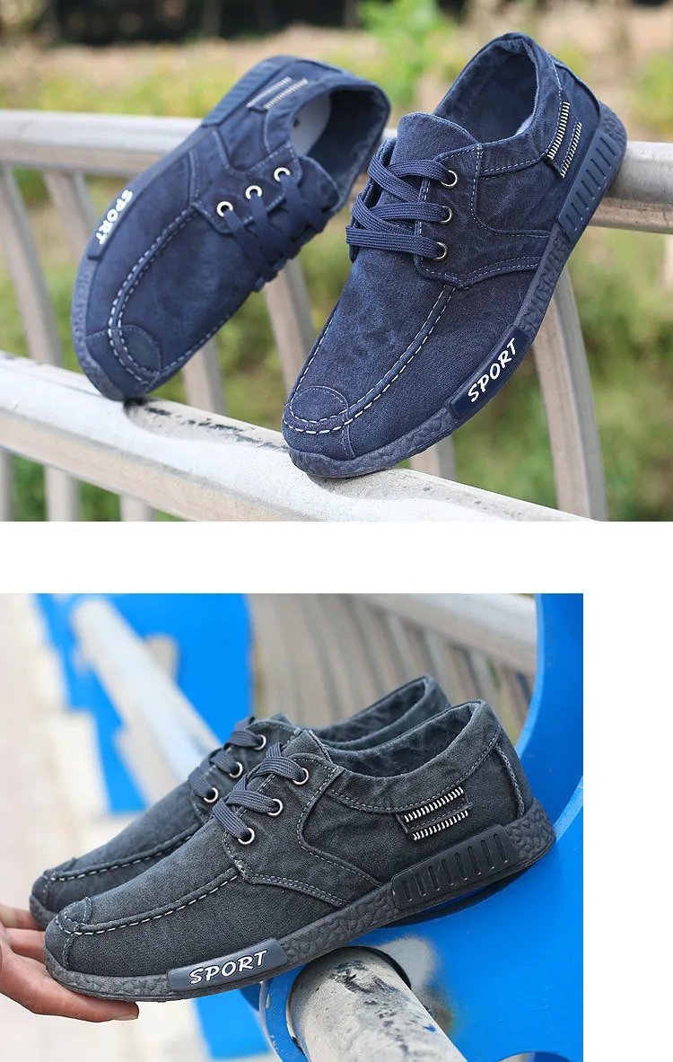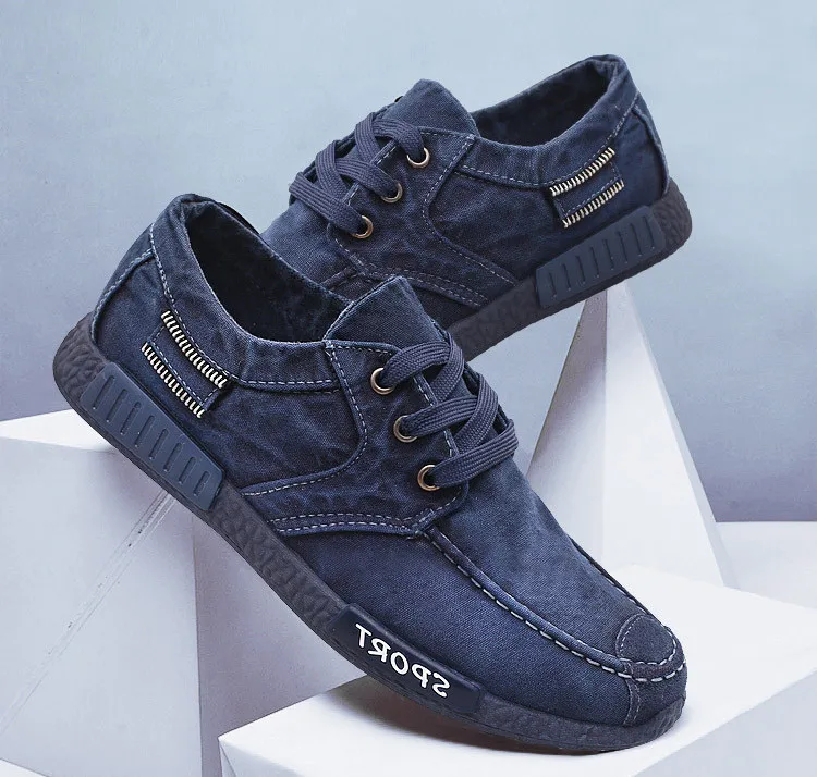 Туфли мужские легкие из денима, повседневные холщовые лоферы, без застежки, дышащие, без каблука, Нескользящие, кроссовки