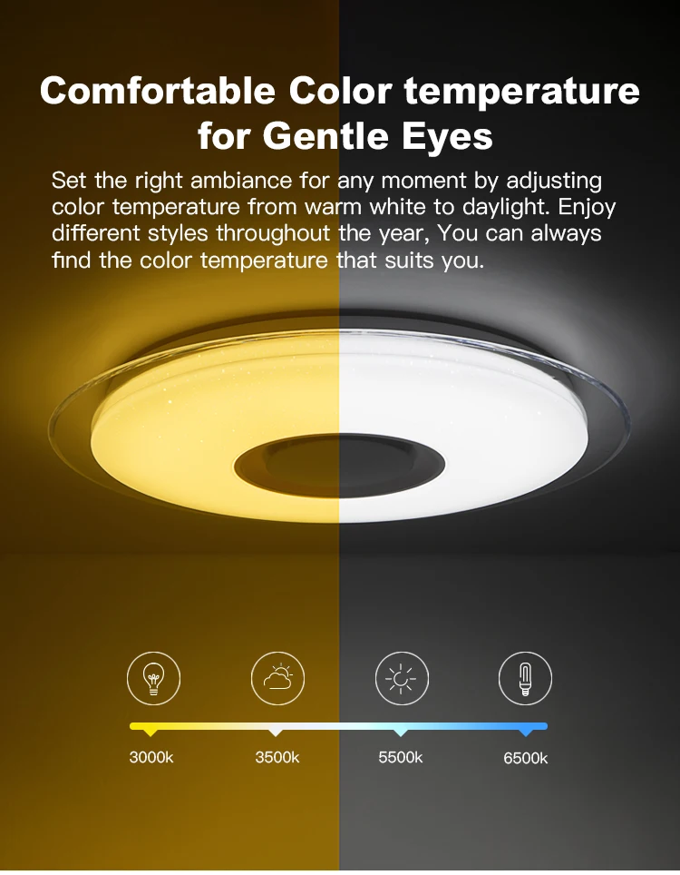 Потолочный светодиодный светильник Offdarks, Bluetooth-динамик, дистанционное управление, приложение для гостиной, спальни, потолочный светильник для кухни