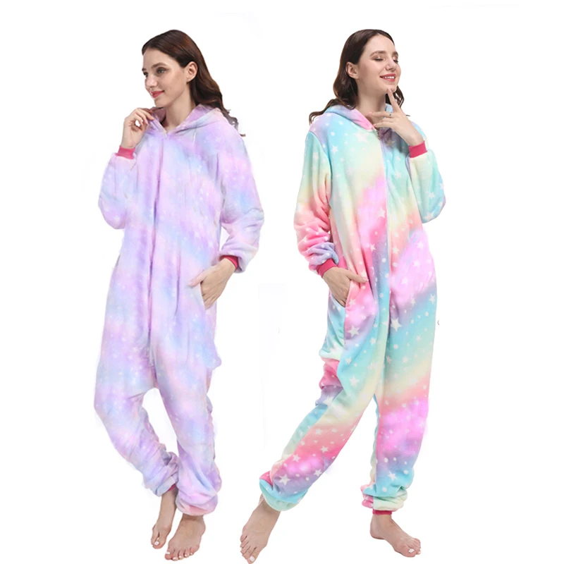 Пижама-кигуруми в виде единорога для женщин, фланелевый комбинезон ...