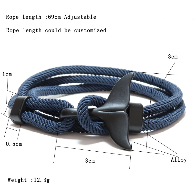Модный браслет Manta, мужской Регулируемый веревочный браслет, обтягивающий браслет, подарок для Него, бразильский браслет для выживания, простой крючок, хвост, браслет акулы