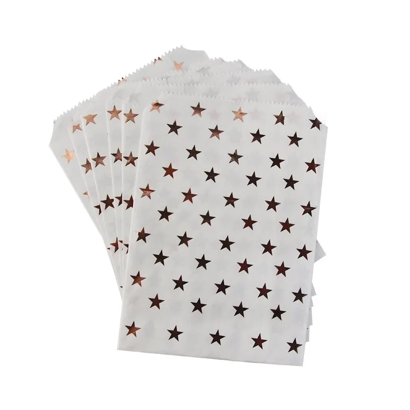 Пакеты для еды розового, золотого, серебряного цвета в горошек со звездами и шевронами, 20 шт.