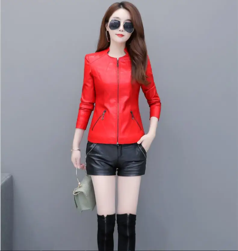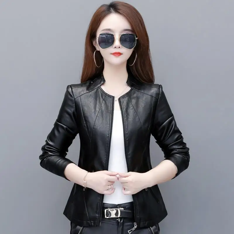 Новая кожаная куртка женское кожаное пальто 2022 Весенняя модная женская кожаная куртка короткая мотоциклетная куртка женская куртка