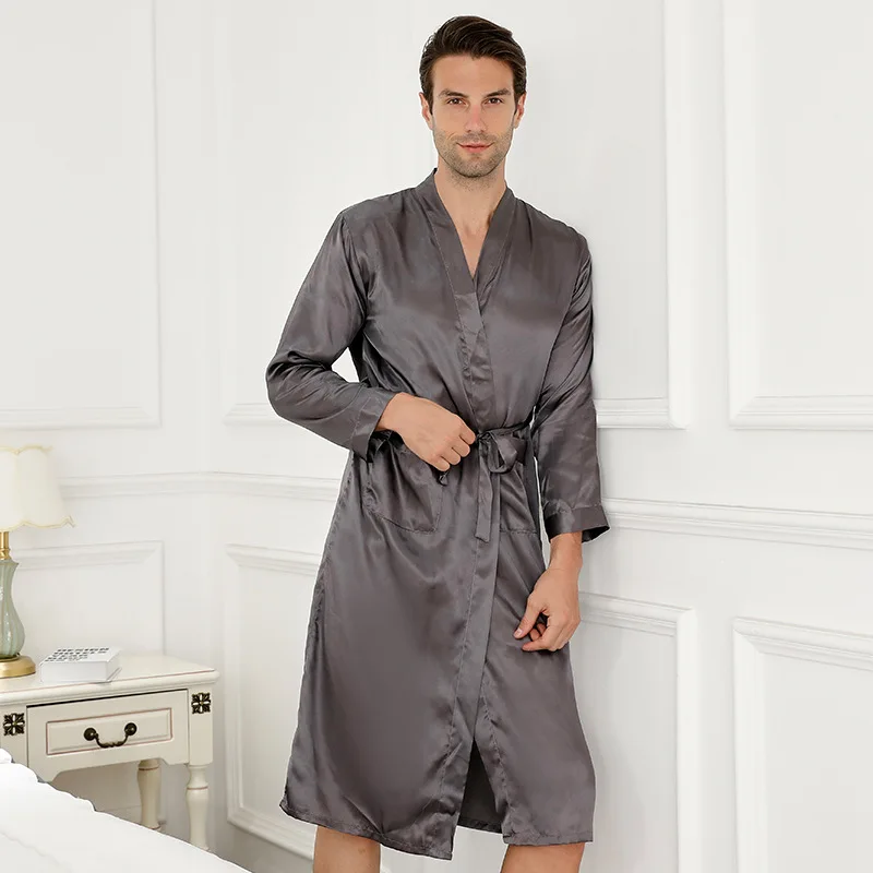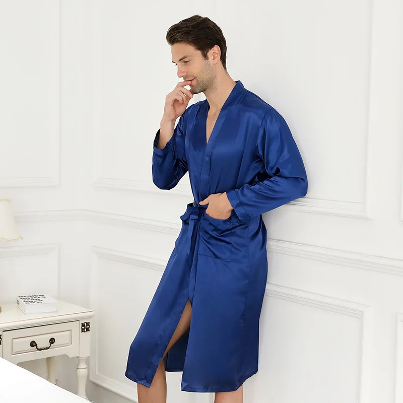 Голубой китайский шелковый халат для мужчин, летняя повседневная одежда для сна с V-образным вырезом, женское платье, Размеры M, L, XL, XXL