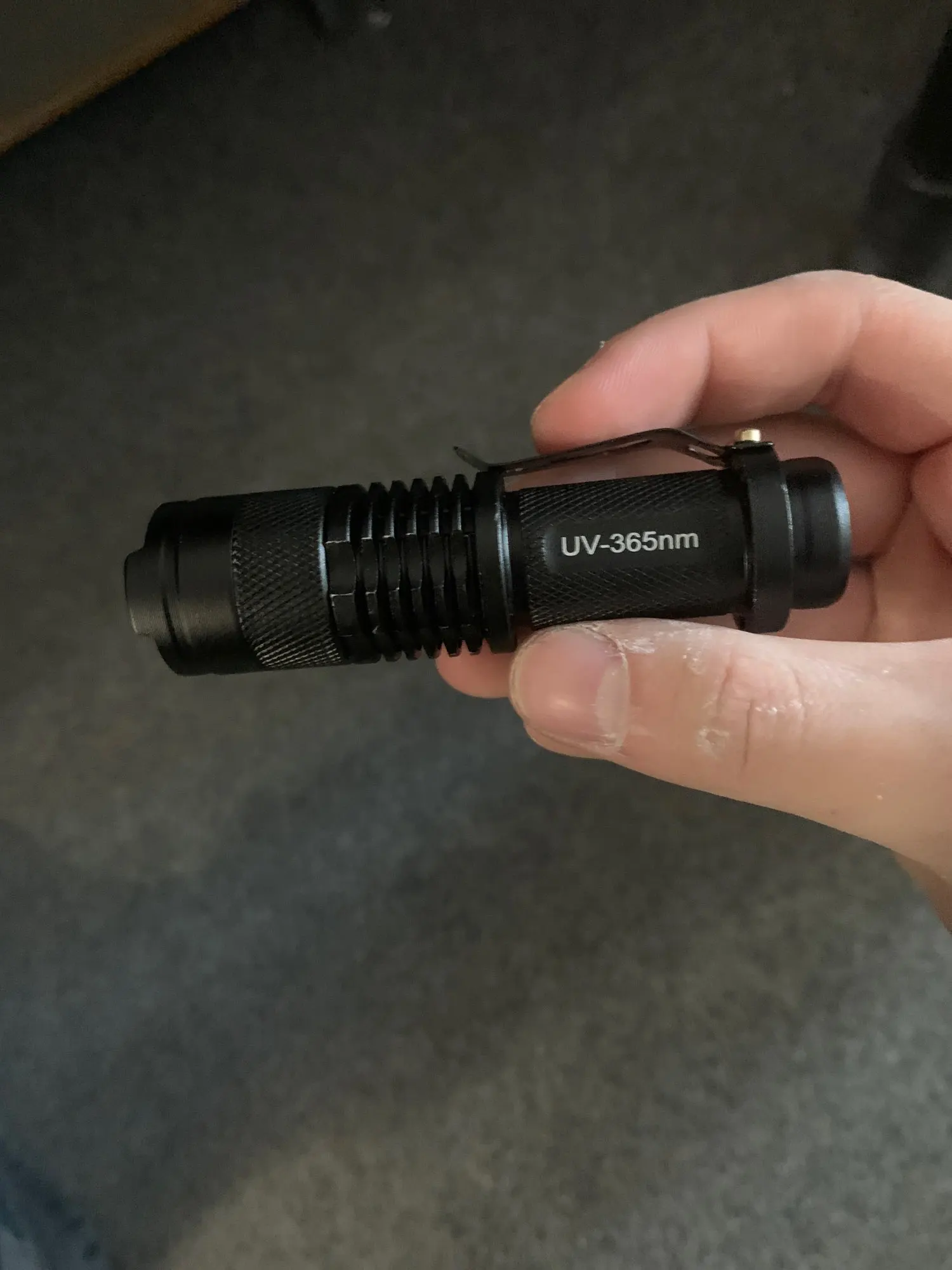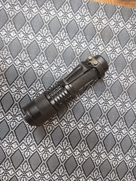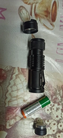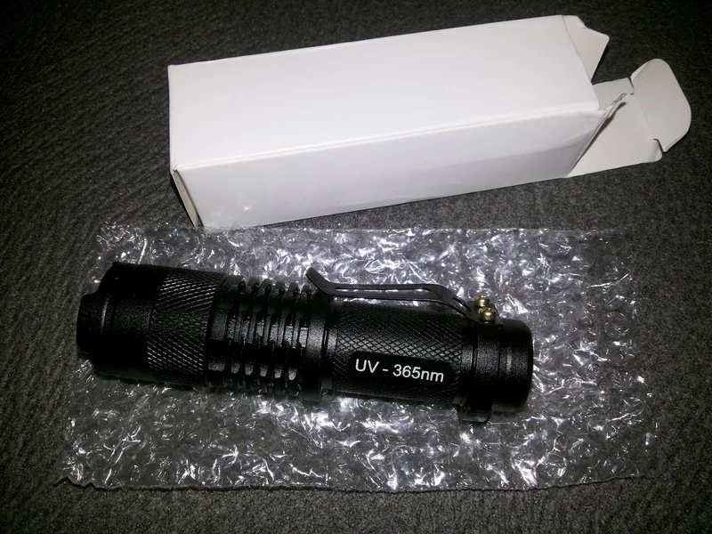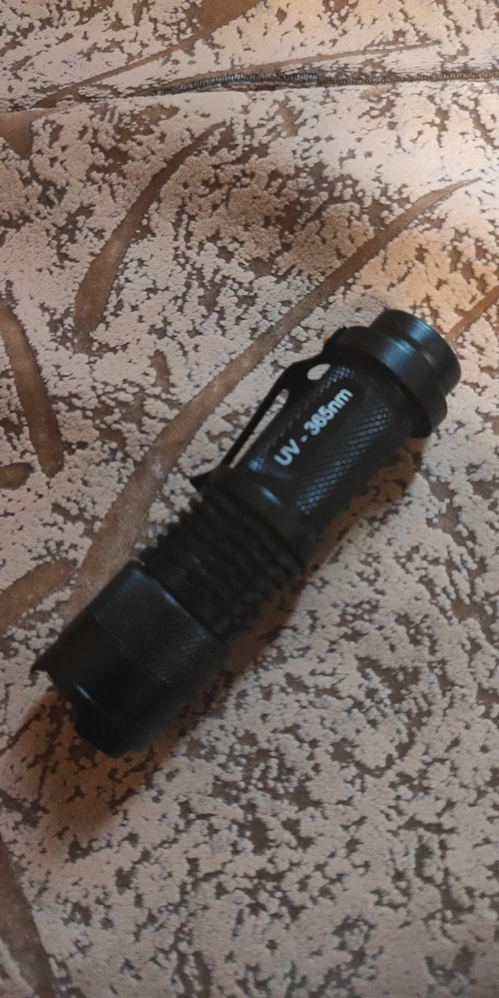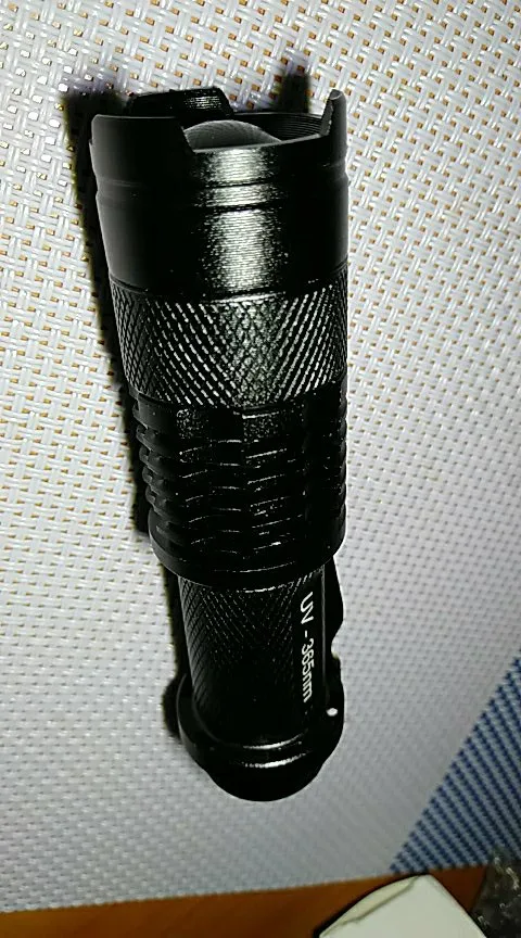 Хороший фонарик. Брал 365нм, на фото сравнение 395 и 365. После заказа продавец очень долго просил докупить акб с зарядкой или оплатить ему доставку. В итоге отправил верблюдами Китая.