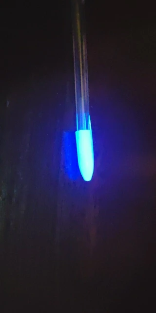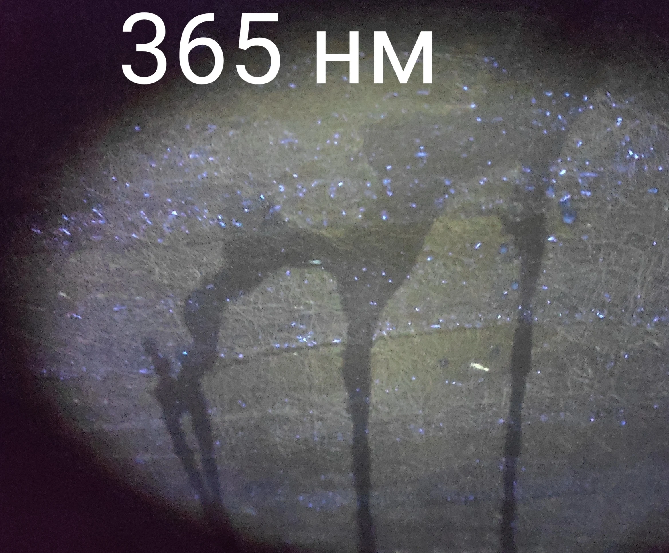 Ничего особенного (365nm), оправдывает только цена. Светит слишком ярко в видимой части спектра, короче баловство.