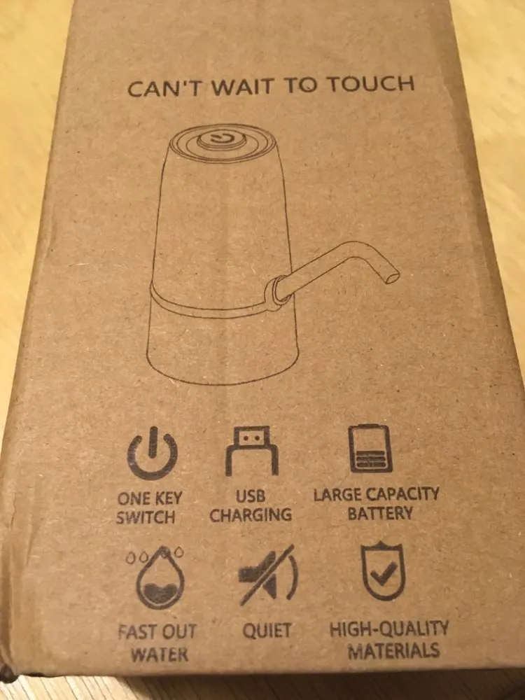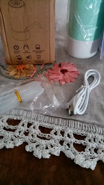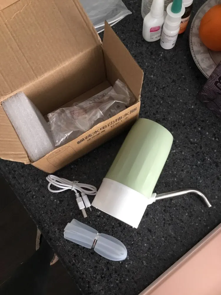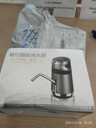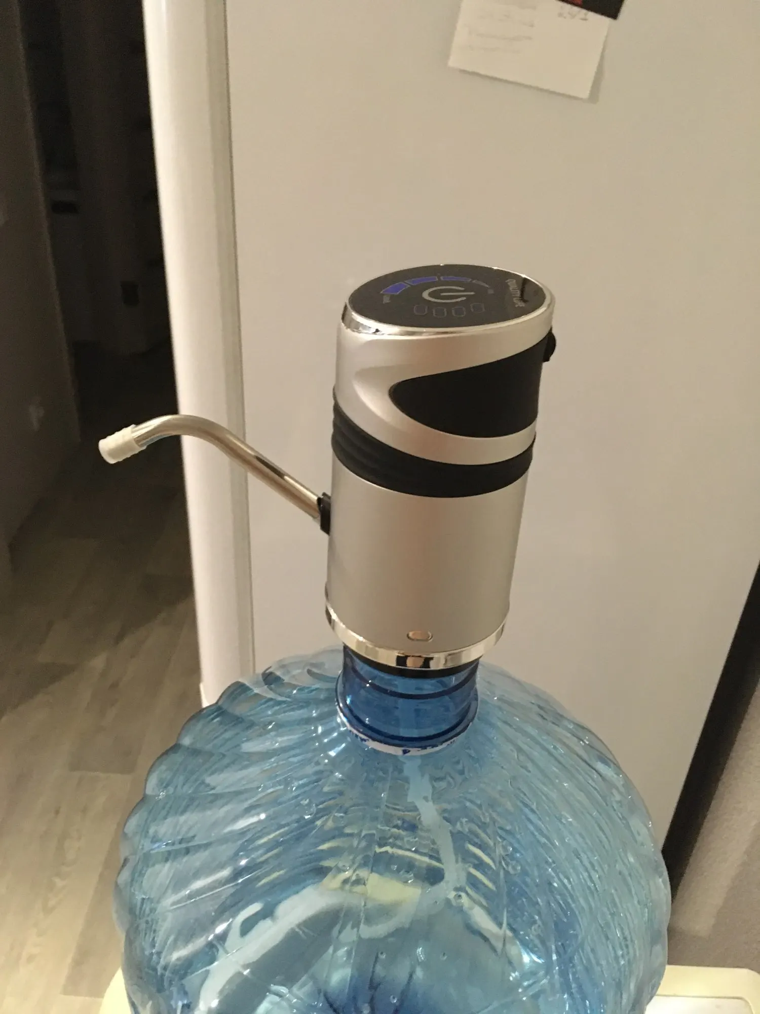хорошая помпа с встроенным аккумулятором. пришла достаточно быстро, за три недели в Москву. в комплекте шнур для подзарядки (microusb). подходит для больших бутылок. работает громко, струя сильная. аккумулятора хватает на неделю не очень интенсивного использования или 3/4 19-ти литровой бутылки с водой