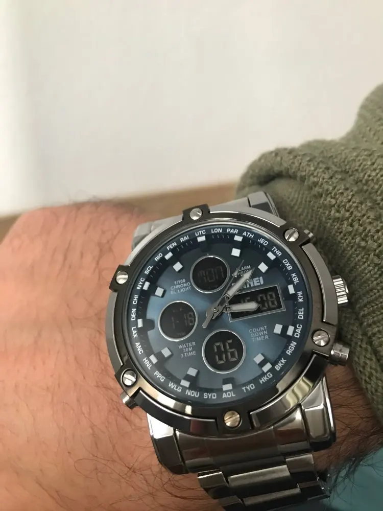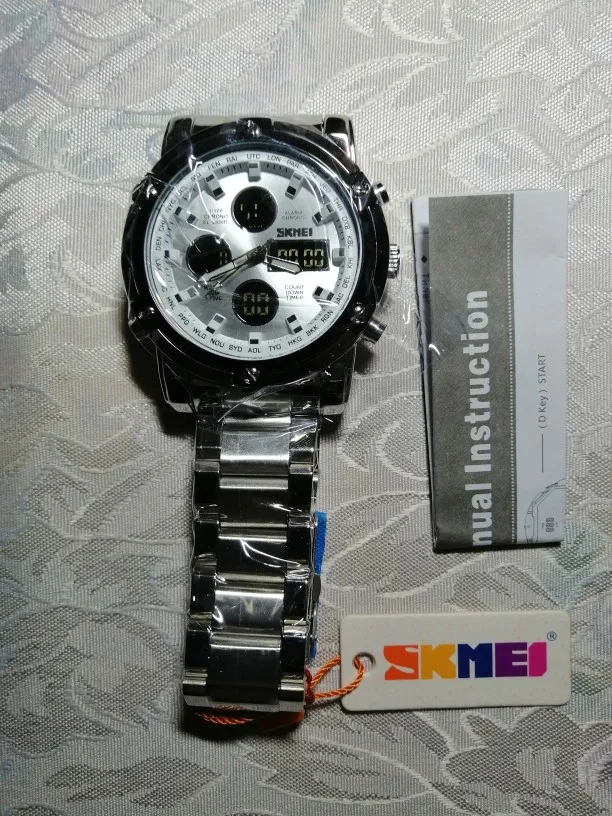Это стояло того времени ожидания. Выглядит дороже, чем он, но очень тяжелый. Я получил его в упаковке без коробки и без инструкций по использованию. Теперь я хочу узнать, как установить дату, день, будильник и т. д.