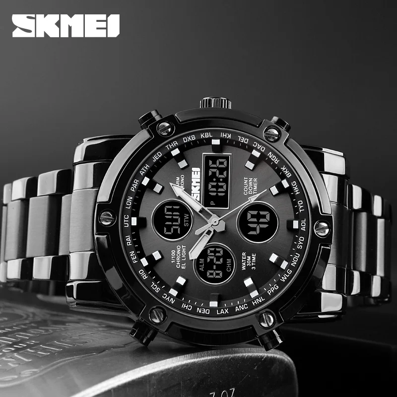 Часы мужские, из нержавеющей стали, с цифровым браслетом