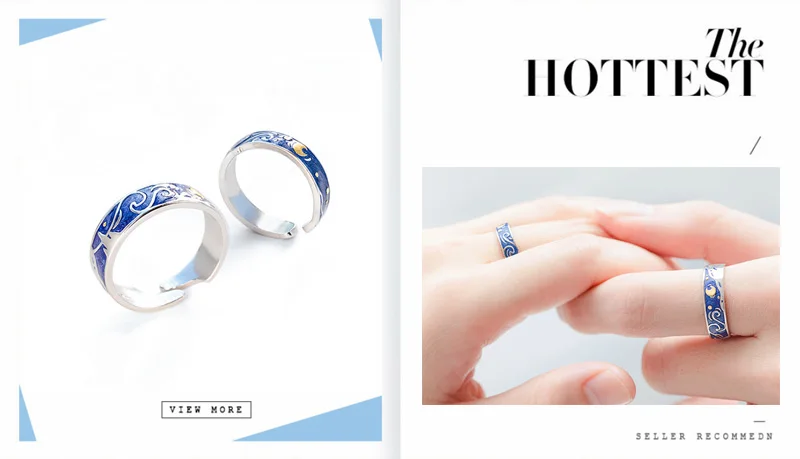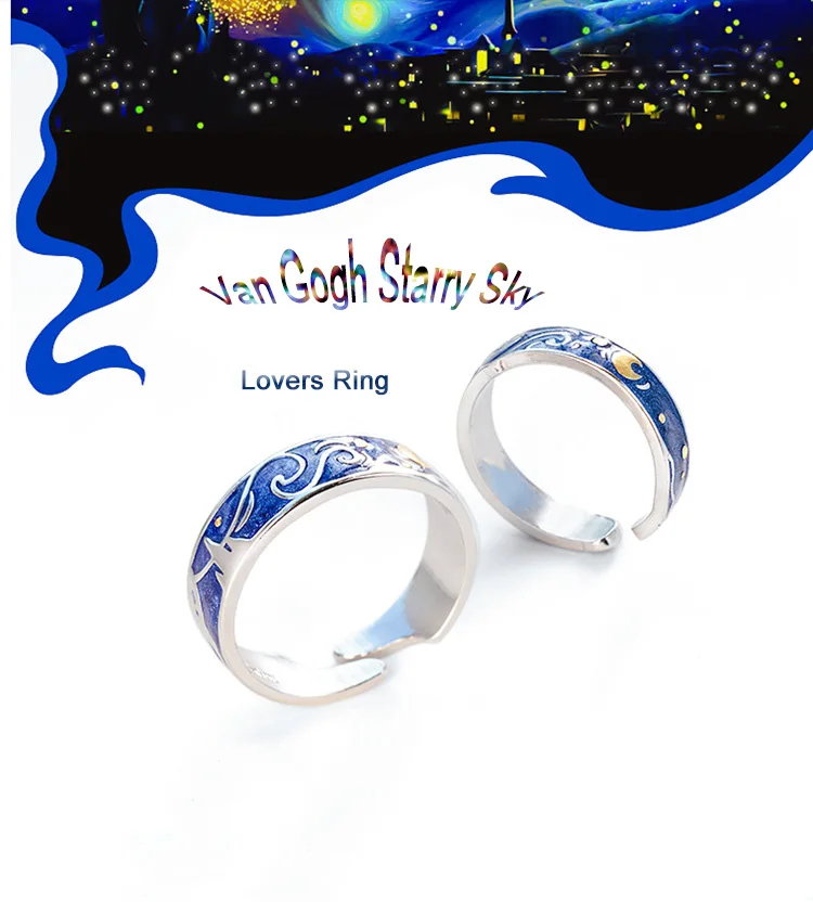 Кольцо в винтажном стиле с изображением Ван Гога, звездного неба