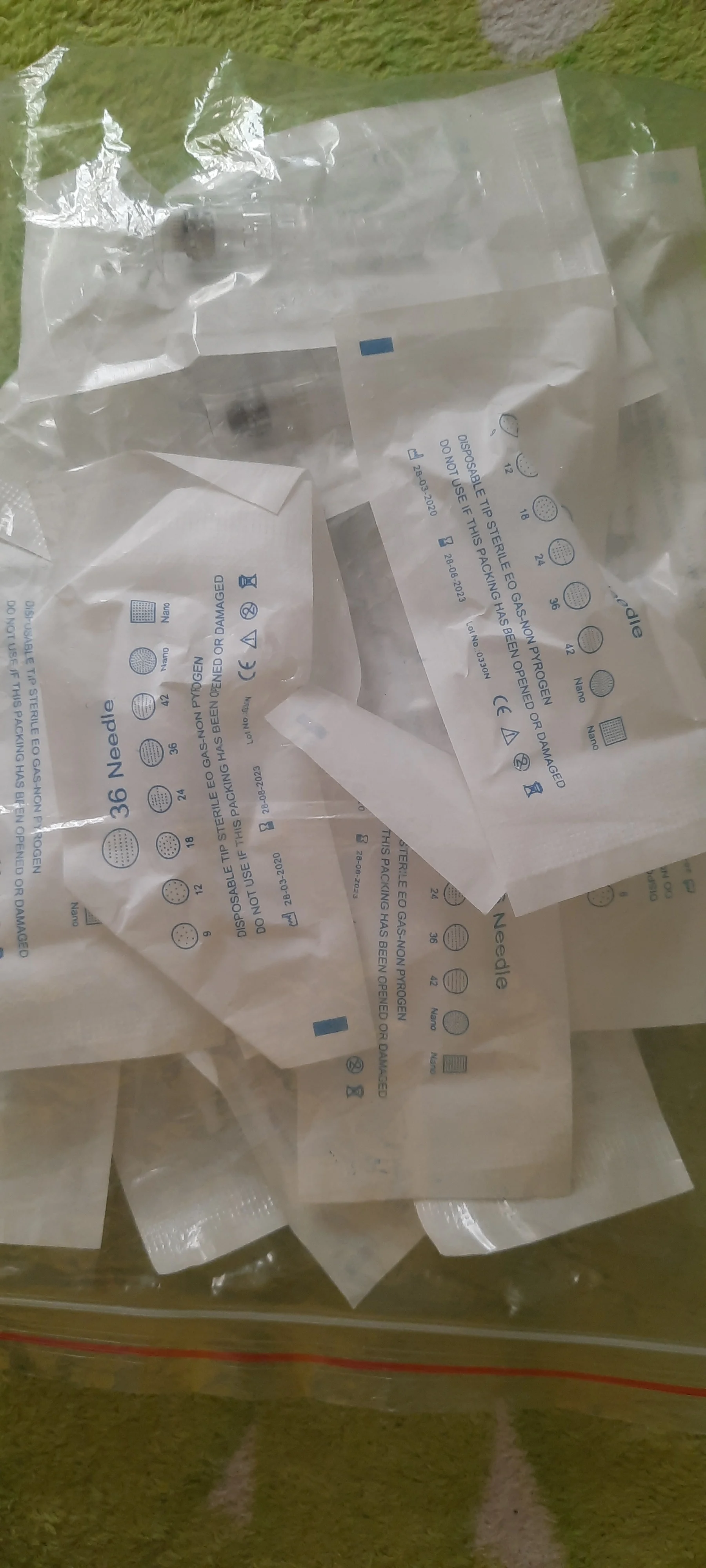 Пришли за 10 дней. Иглы хорошие, брала 42 пин. к аппарату подошли. делала первый раз. установила на 1 мм, на все лицо и глаза тоже. процедура заняла 40 минут. крови не было. краснота спала только через сутки. после процедуры делала тканевую маску. Для мезо использовала специальный препарат для мезотерапии экстракт улитки. Спустя сутки уже видно эффект, темные круги под глазами заметно уменьшились, морщины стали меньше. Мезо можно делать один раз в неделю, 10-15 раз. повторять курс можно два раза в год. Я не водила препаратом, а поднимала и опускала, иначе поцарапать лицо можно. в следующий раз глубину прокола увеличу немного. всем советую. новичкам лучше начинать с 0,5 мм. я до этого пользовалась мезороллером, совсем другое. но тоже хорошо для начала. мне 40 лет.