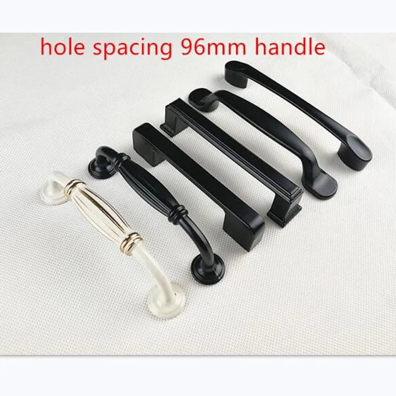 Черные ручки шкафа из цинкового сплава с расстоянием между отверстиями 96 мм, кухонная дверь в американском стиле, ручка для мебели