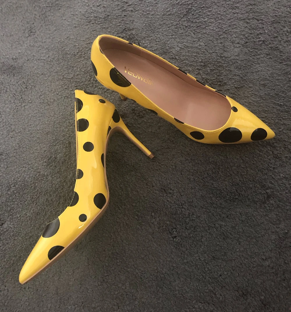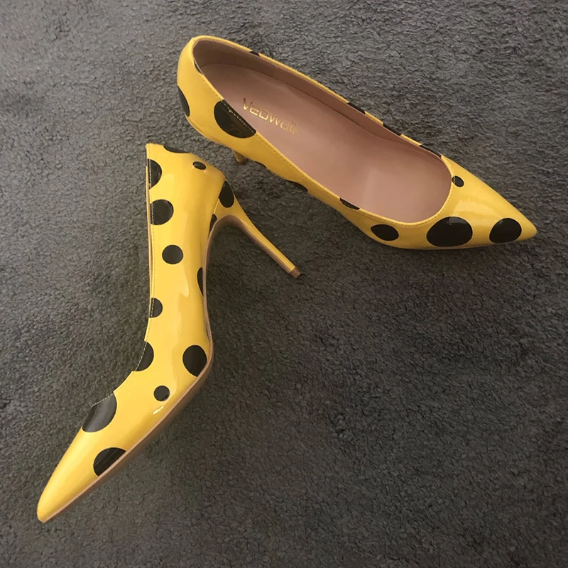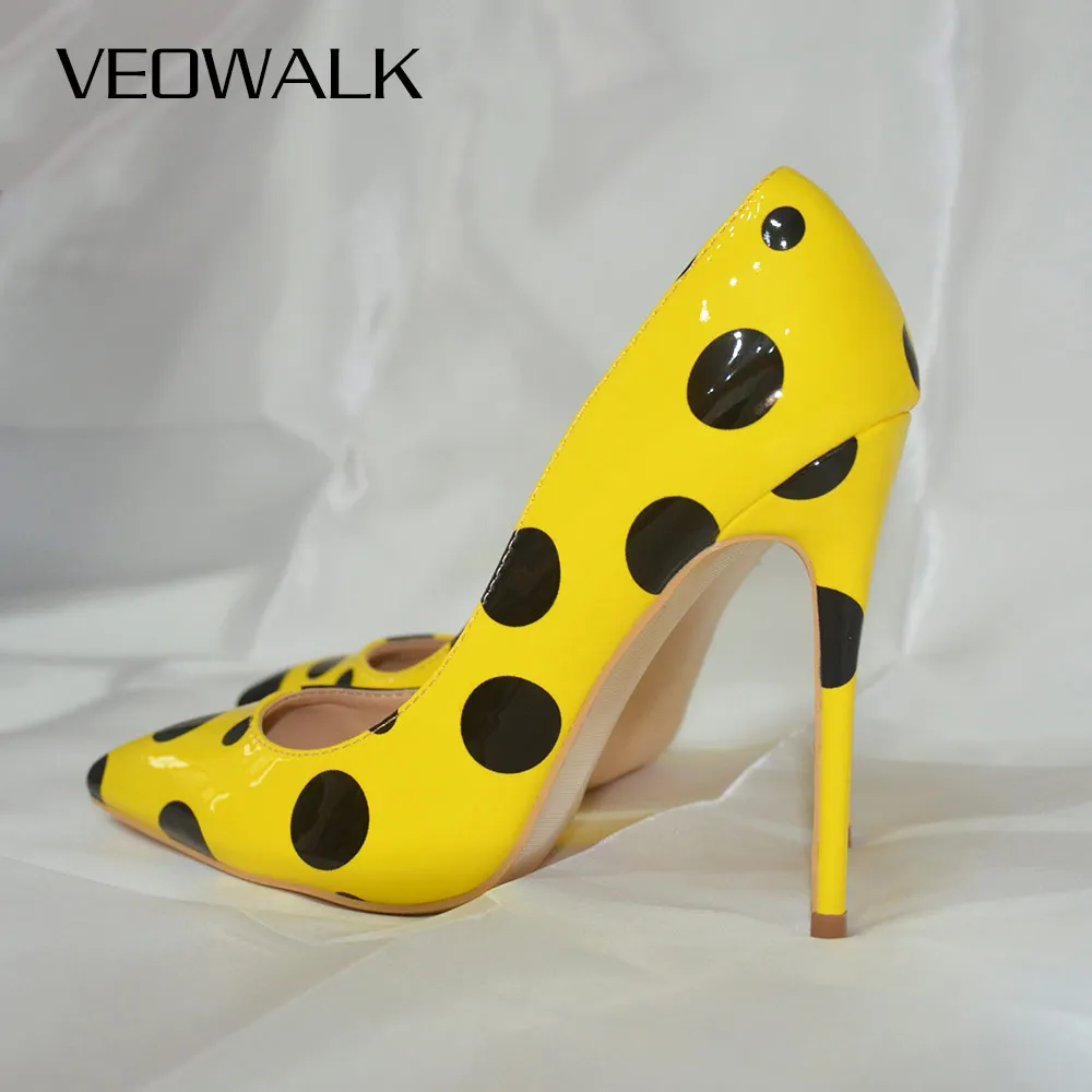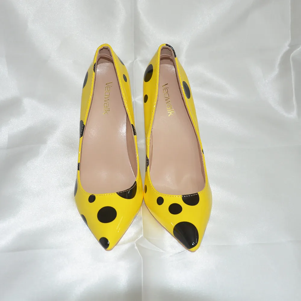 Женские туфли-лодочки Veowalk, черные, в горошек, на высоком каблуке-шпильке, модные туфли-лодочки, для клуба, вечеринки, под платье, цвет под заказ
