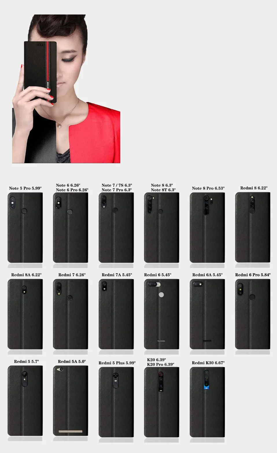 Чехол-книжка для Xiaomi Redmi Note 10, 5, 6, 7S, 7, 8T, 8, 9T, 9S Pro, Redmi K20 Pro, 5 Plus, 5A, 6A, 7A, 8, 8A, 9C NFC, кожаный