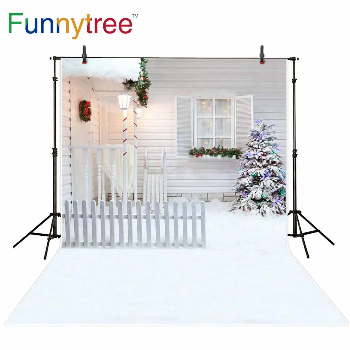 Funnytree фон фотографический пейзаж зимняя Рождественская изгородь светильник окно дерево фотосессия фотография фоны Фотофон