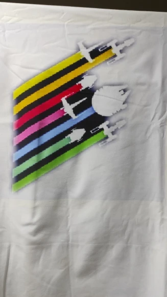 Очень разочарован печатью, как будто не хватает чернил. Цвета не выделяются, а качество футболки ниже.