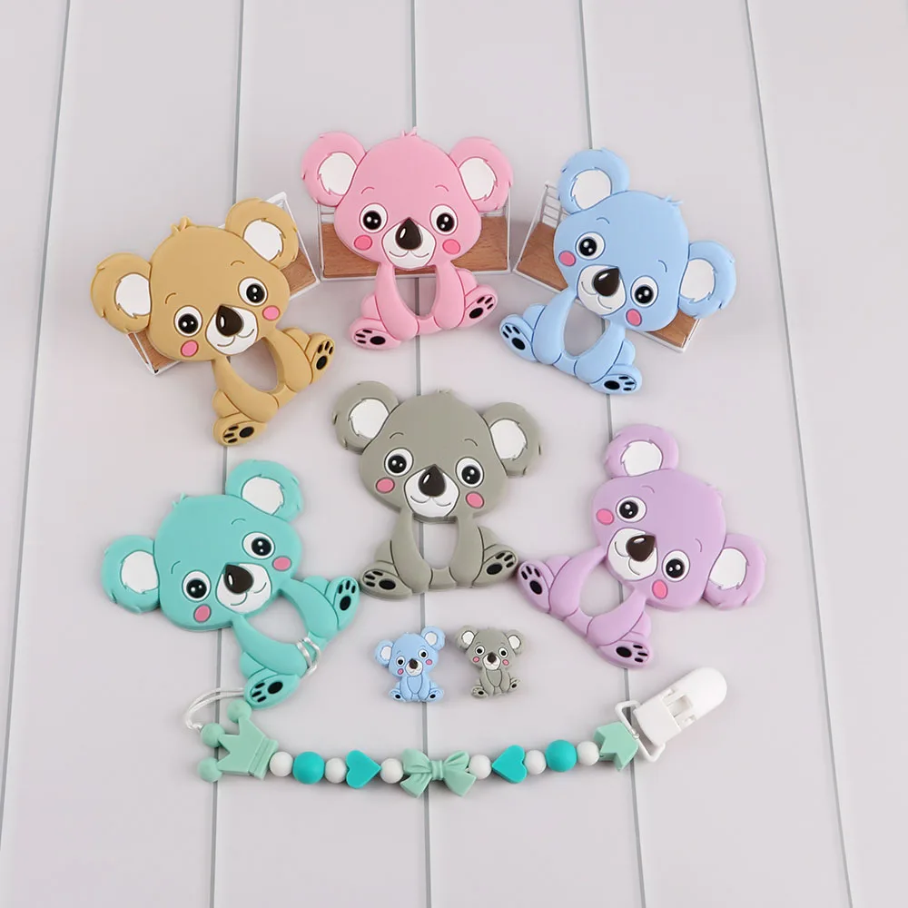 Бусины силиконовые в виде енота, для прорезывателя зубов, для сосок...