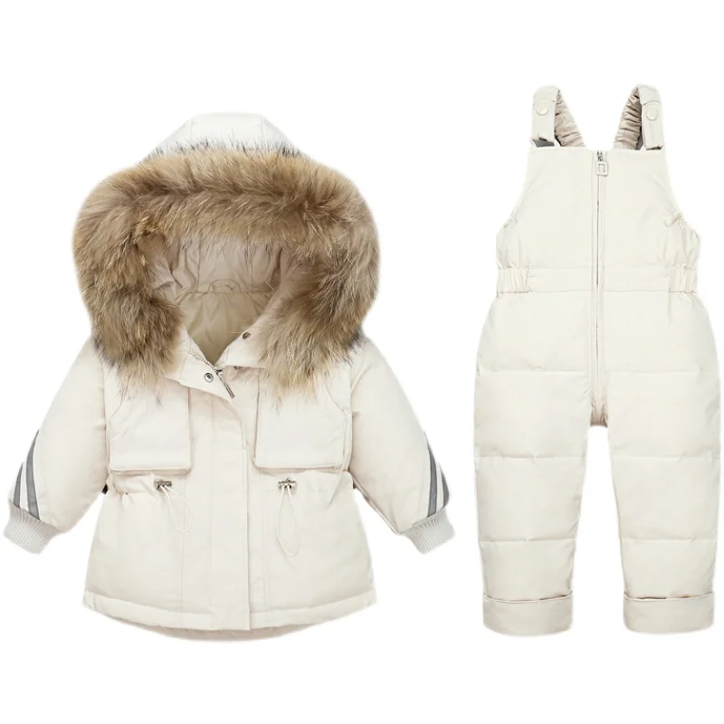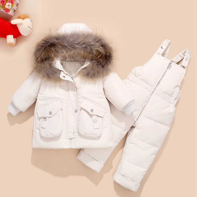 Детский пуховой костюм, куртка + комбинезон, для мальчиков и девочек, зимний комплект из 2 предметов