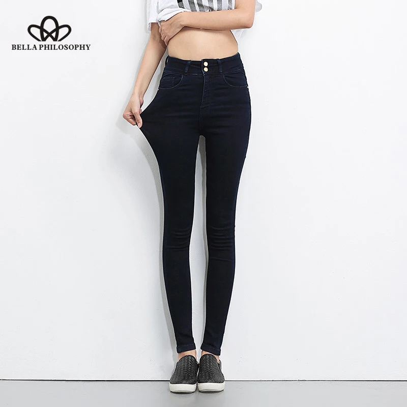 Женские джинсы Bella philosophy размера плюс на пуговицах, черные брюки с высокой талией, Эластичные Обтягивающие Брюки для женщин
