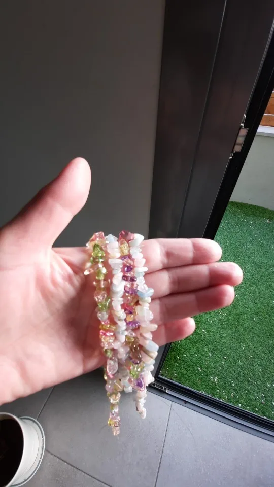 Lunga la spedizione quasi due mesi e mezzo per essere recapitato in Italia, Ogni confezione contiene due fili di pietre trasparenti tutto sommato un buon prodotto anche se me le aspettavo leggermente più lucide più brillanti