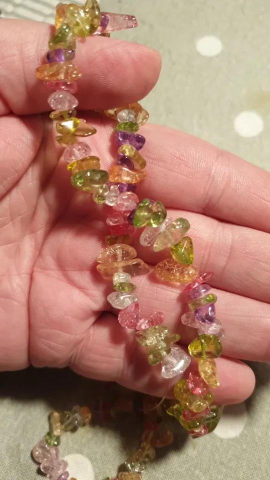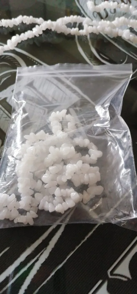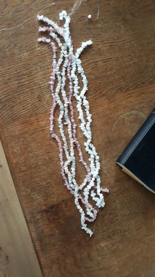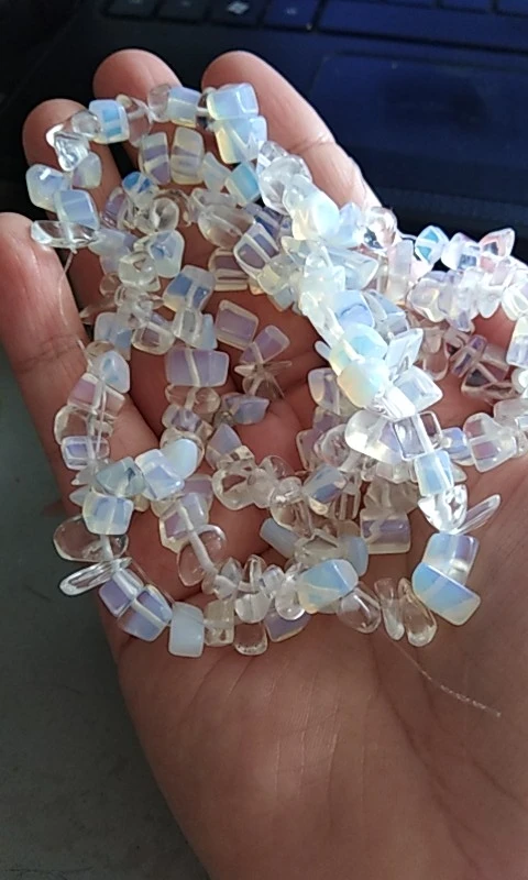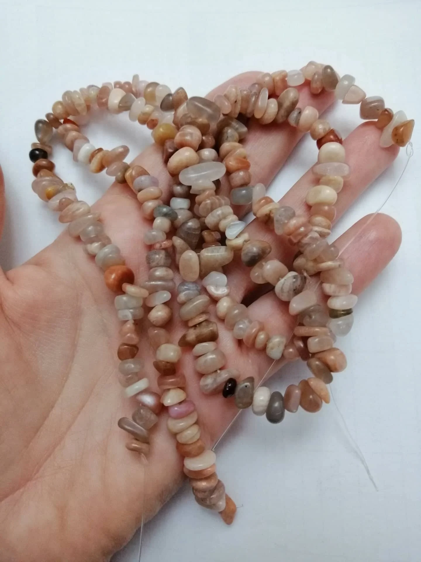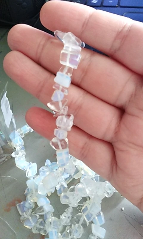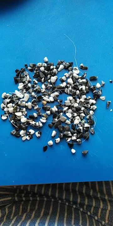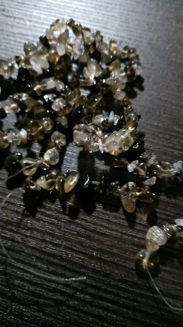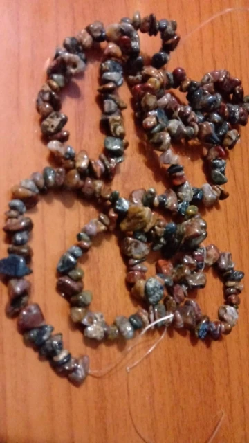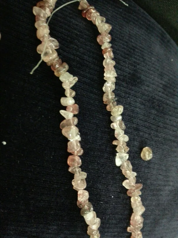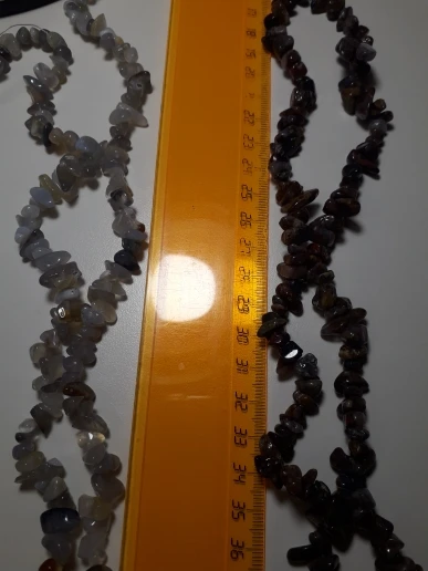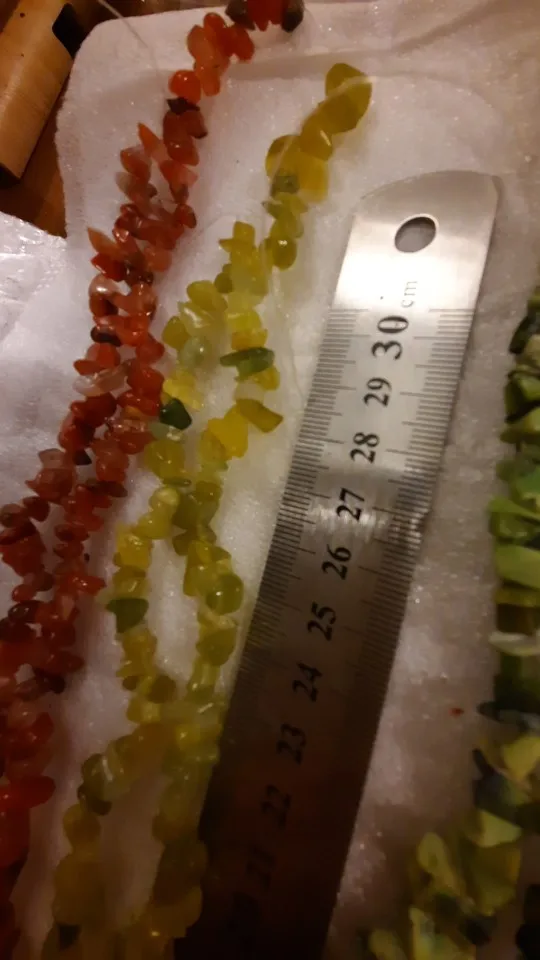 сколы очень хорошие размер ровный не мелкий, но упаковка товара при формировании заказа отвратительная, обрывки лески сколы россыпью, не думаю что здесь даже одна нить, а не две как в описании очень огорчена. Буду открывать спор.