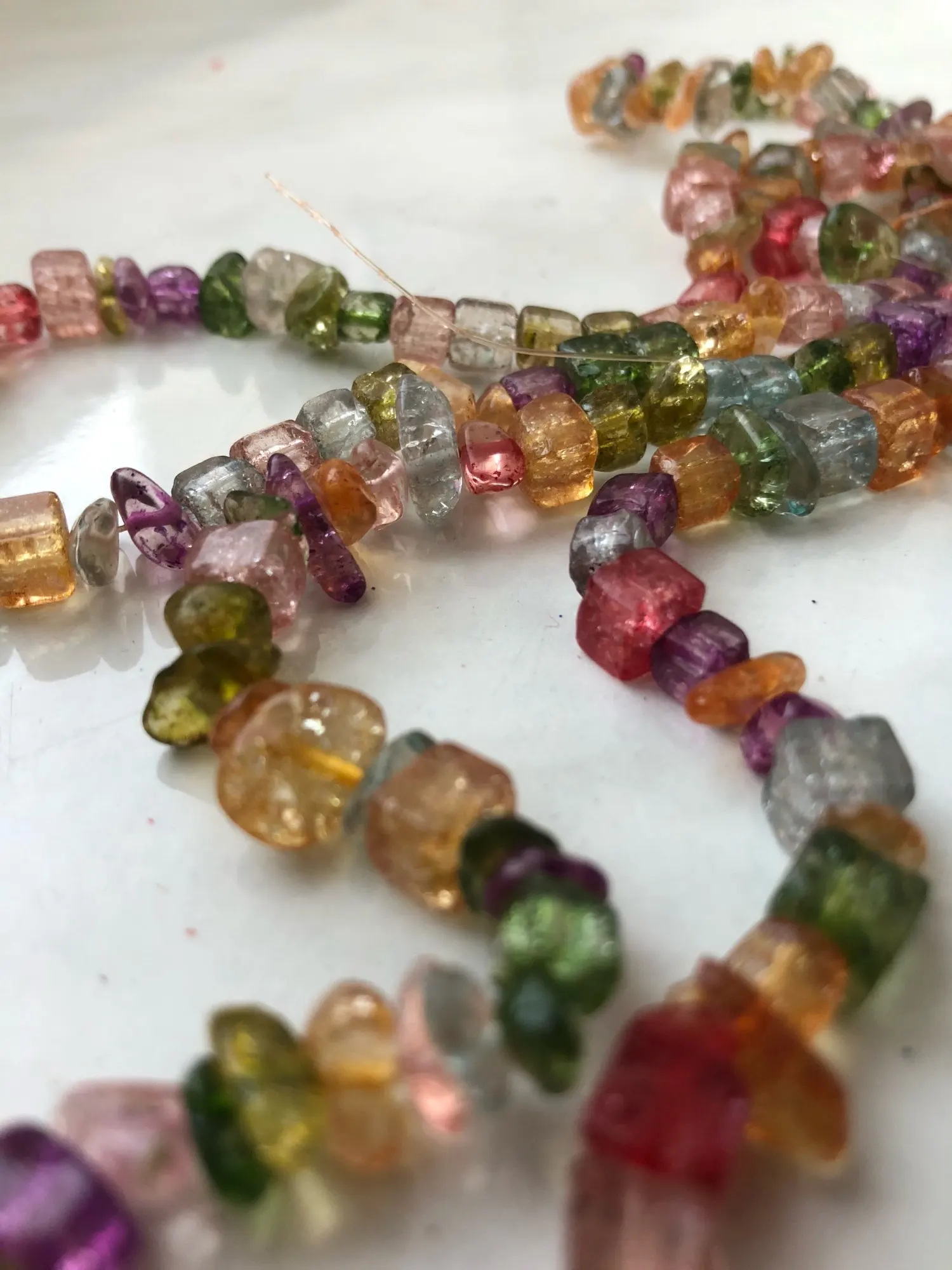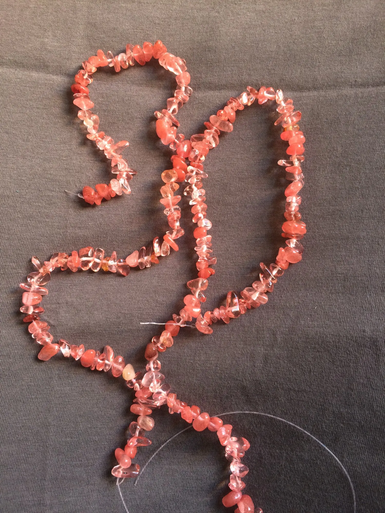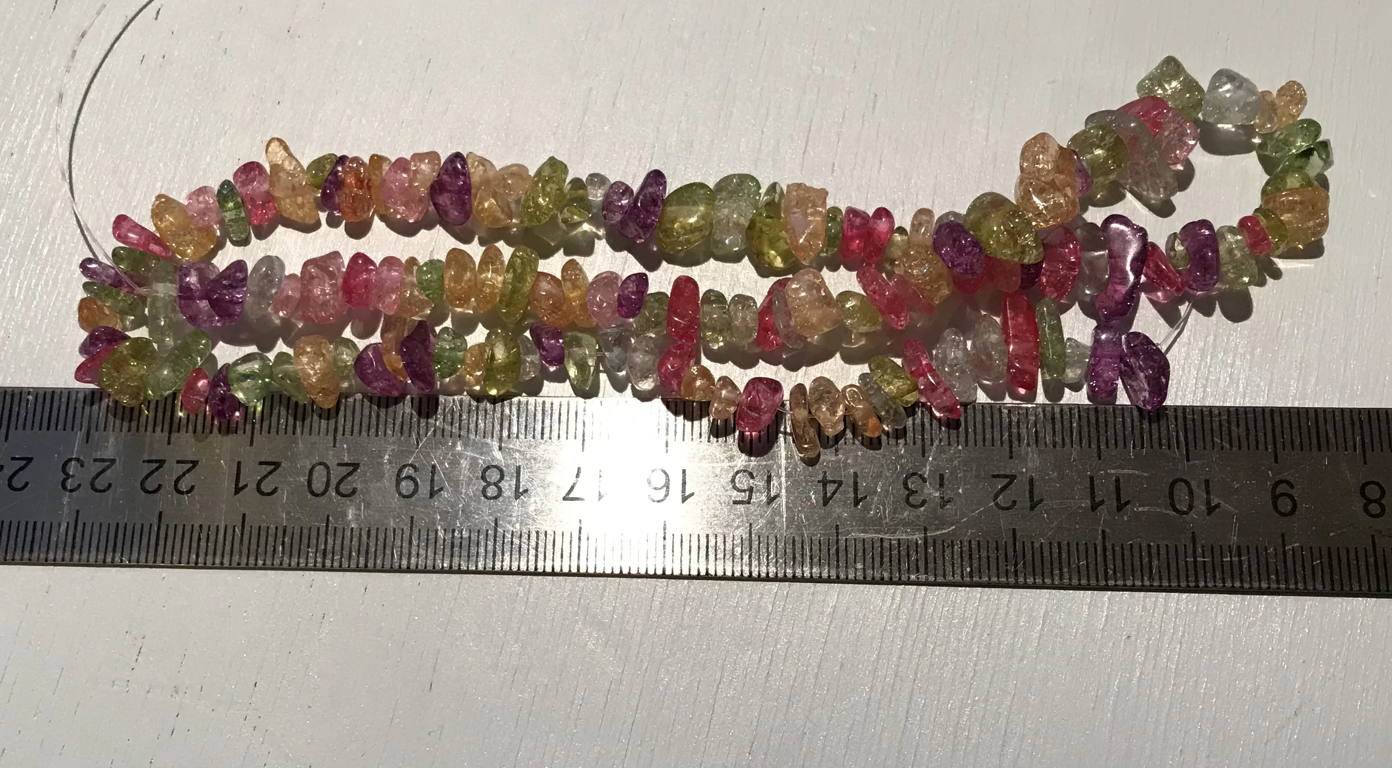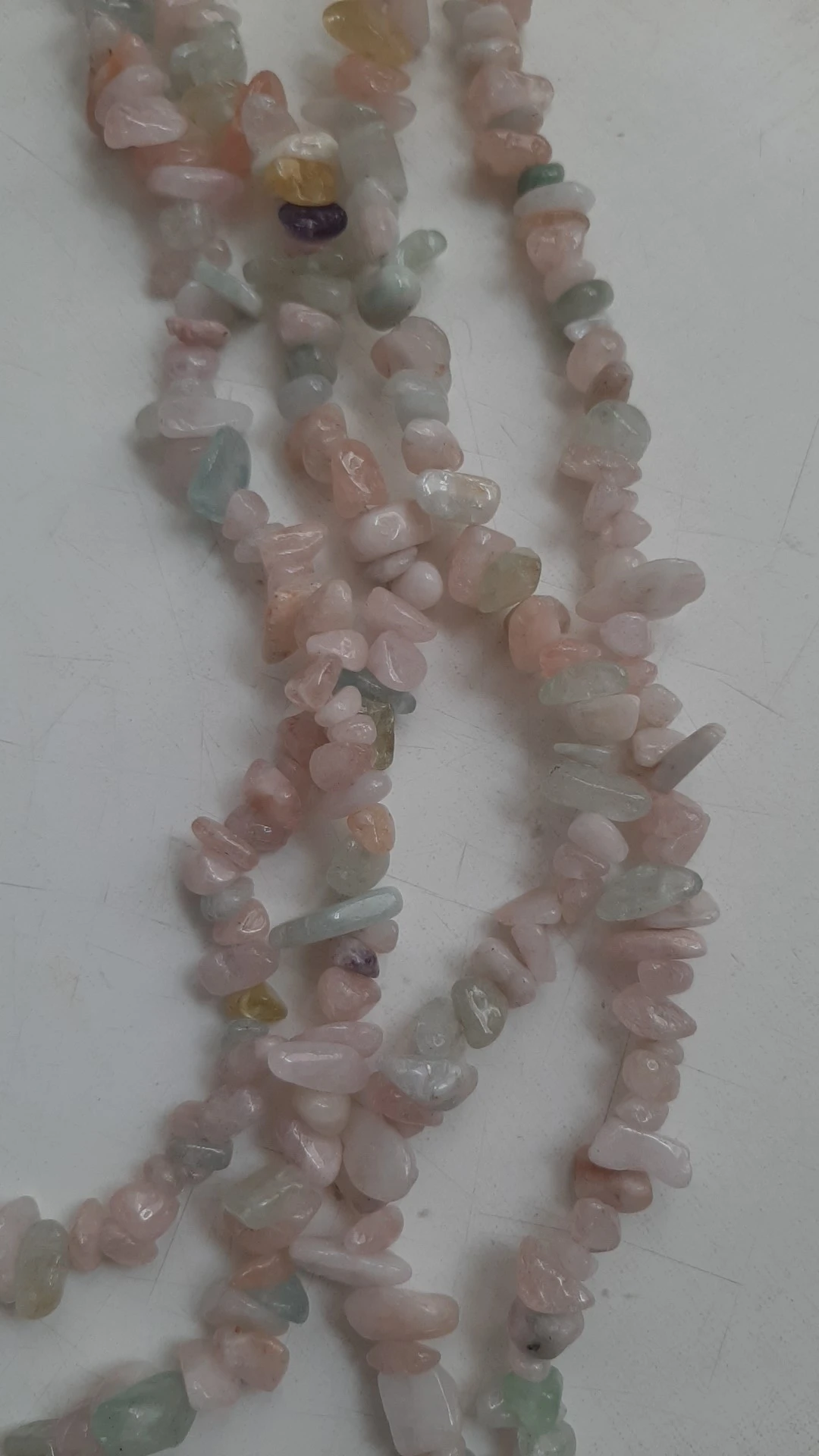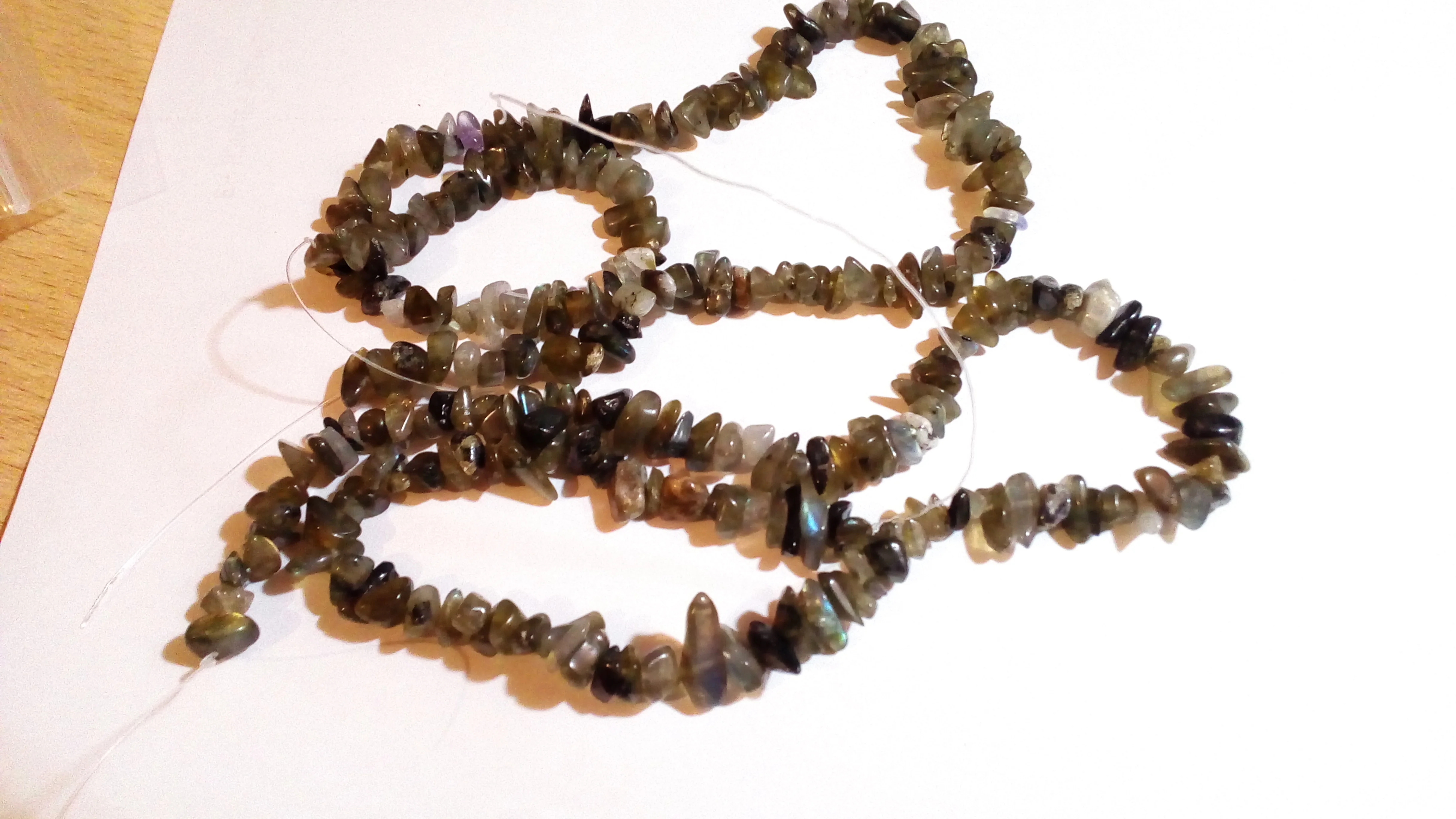 сколы очень хорошие размер ровный не мелкий, но упаковка товара при формировании заказа отвратительная, обрывки лески сколы россыпью, не думаю что здесь даже одна нить, а не две как в описании очень огорчена. Буду открывать спор.