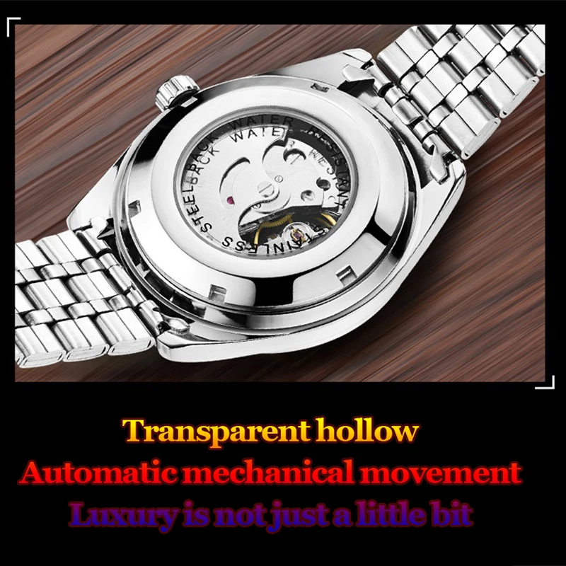 Часы мужские механические, водонепроницаемые, с календарем и автоподзаводом из нержавеющей стали