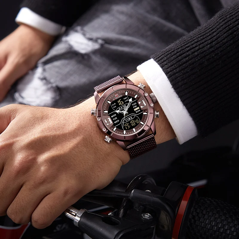 Часы NAVIFORCE Мужские Аналоговые, цифровые, из нержавеющей стали, ...