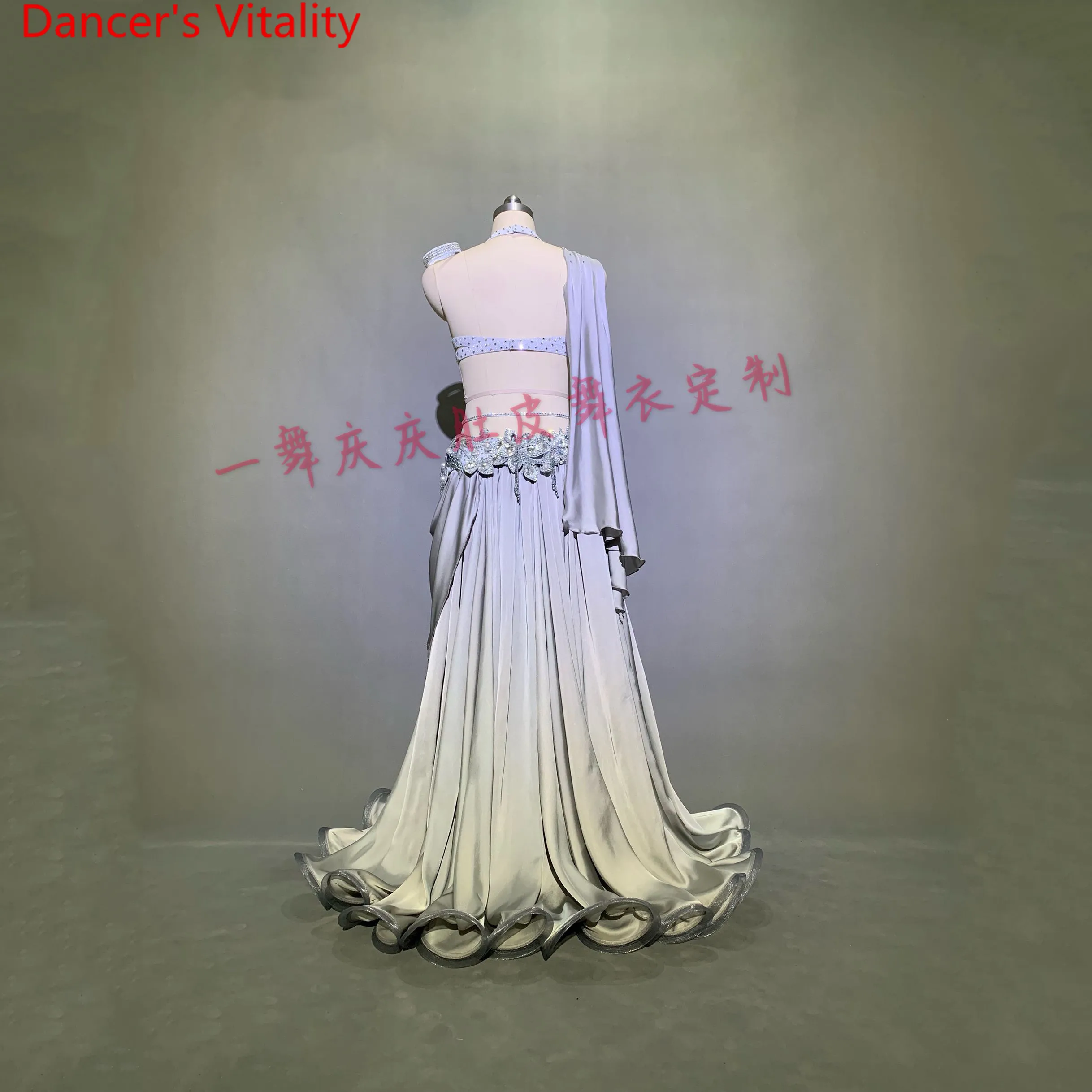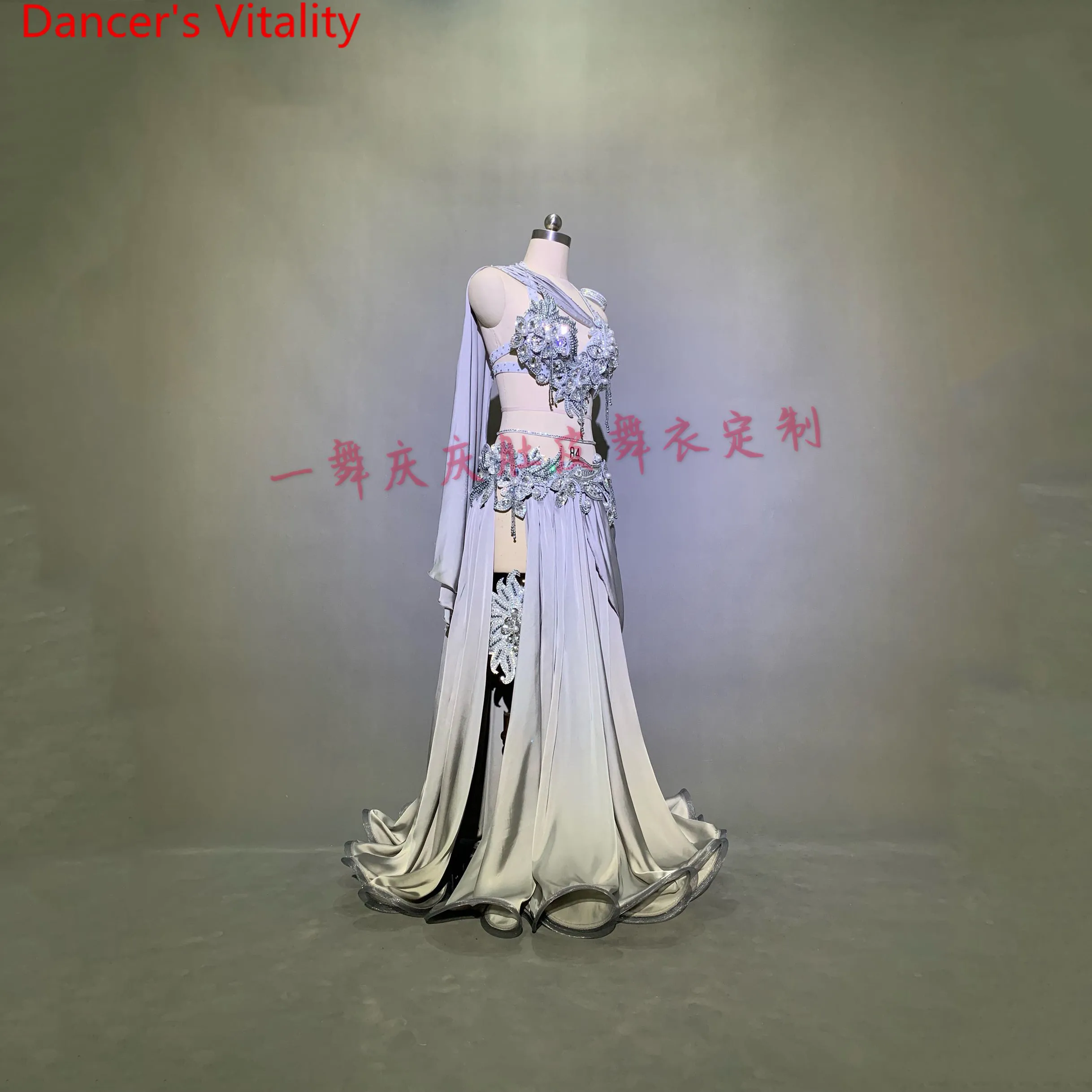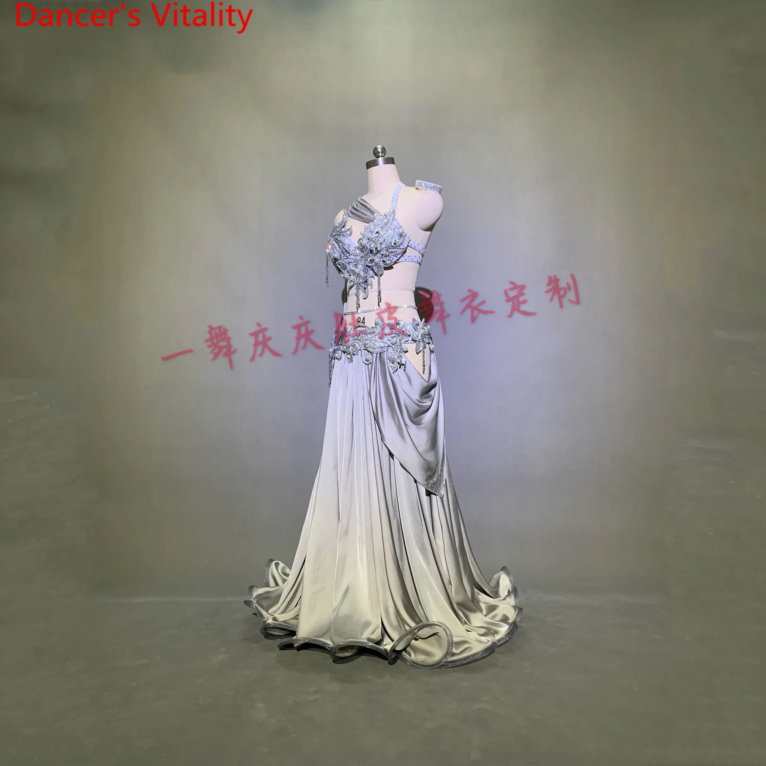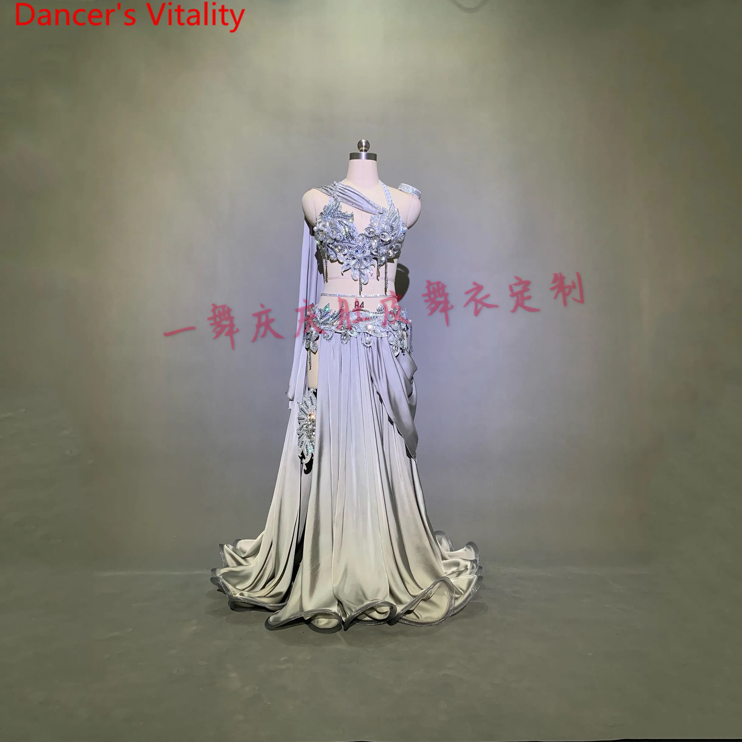 Женский бюстгальтер с лентой для танца живота на заказ, юбка с аппликацией, восточный индийский танцевальный костюм для выступлений