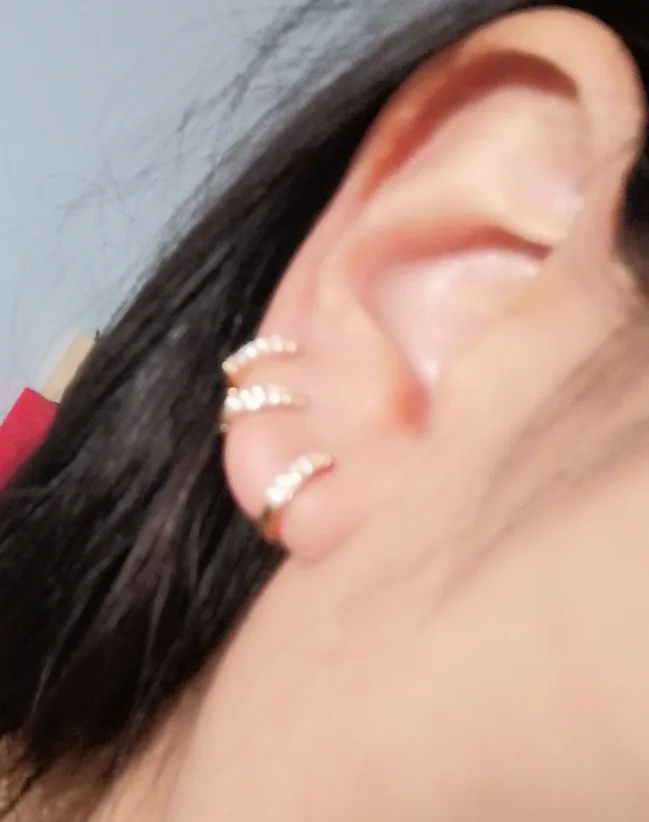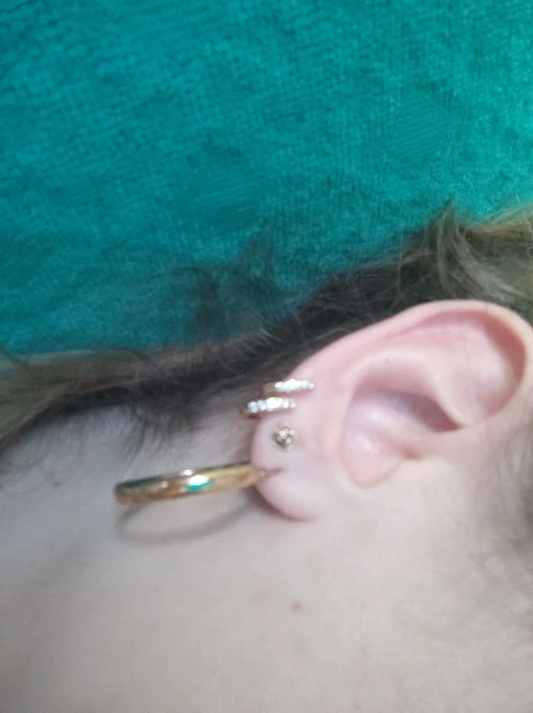 Серёжки маленькие, смотрятся аккуратно, на верхний хрящ уха маловаты, на боковой не пробовала