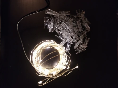 гирлянда пришла рабочая, свет приятный сама гирлянда оказалась очень тонкой (2 сплетенные проволоки, каждая по 0.5 мм толщиной) , лампочки малюсенькие (5 мм), но светят достаточно. для декора комнаты самое то, никаких громоздких проводов, которые могли бы мешаться :)) длину с линейкой не замеряла, но вроде всё соответствует p.s. прищепки с сердечками, идущие в комплекте, маленькие (2,5 см в длину) и немного хрупкие p.s.s. доставка до Москвы заняла 20 дней