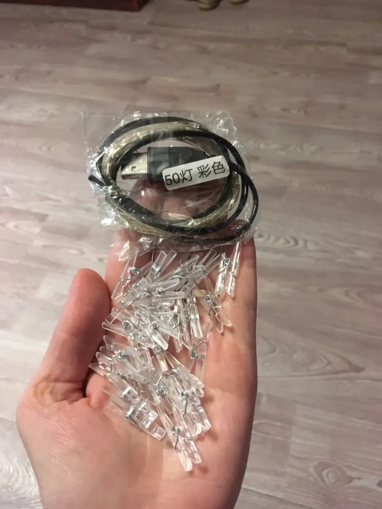 Обычная гирлянда, заказывала несколько наподобие, эта просто с маленькими прищепками,шла долго