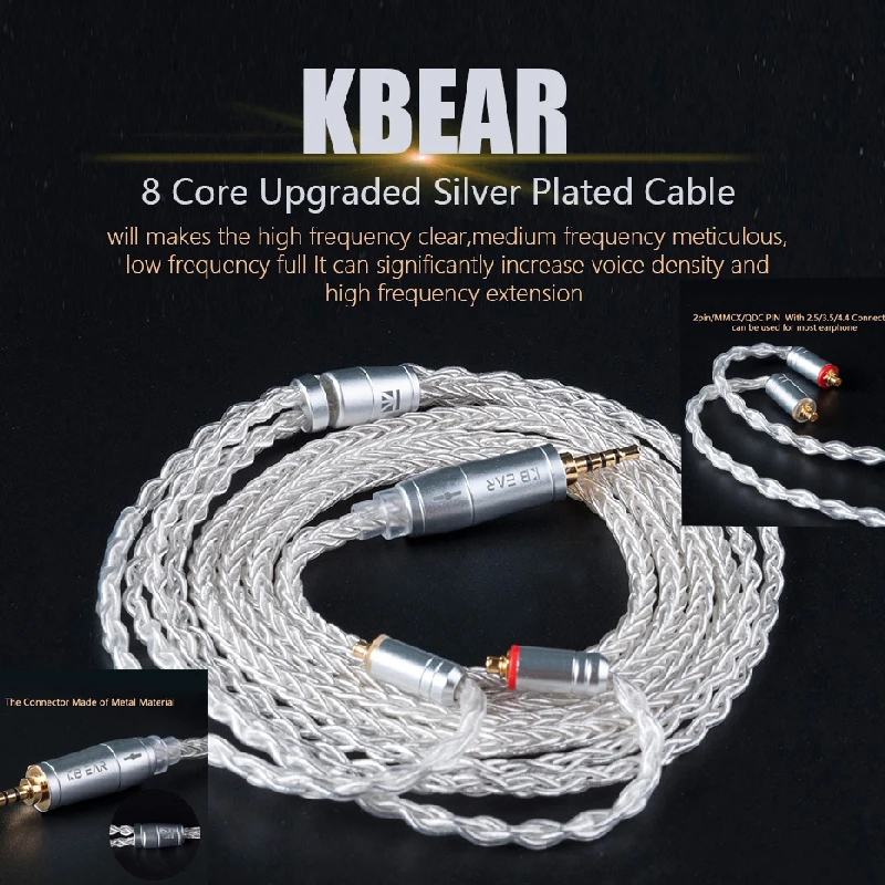Для ZS10 Pro AS10 AS16 ZSN PRO KBEAR 8-жильный обновленный посеребренный сбалансированный кабель 2,53,54,4 мм с разъемом MMCX2pinQDC