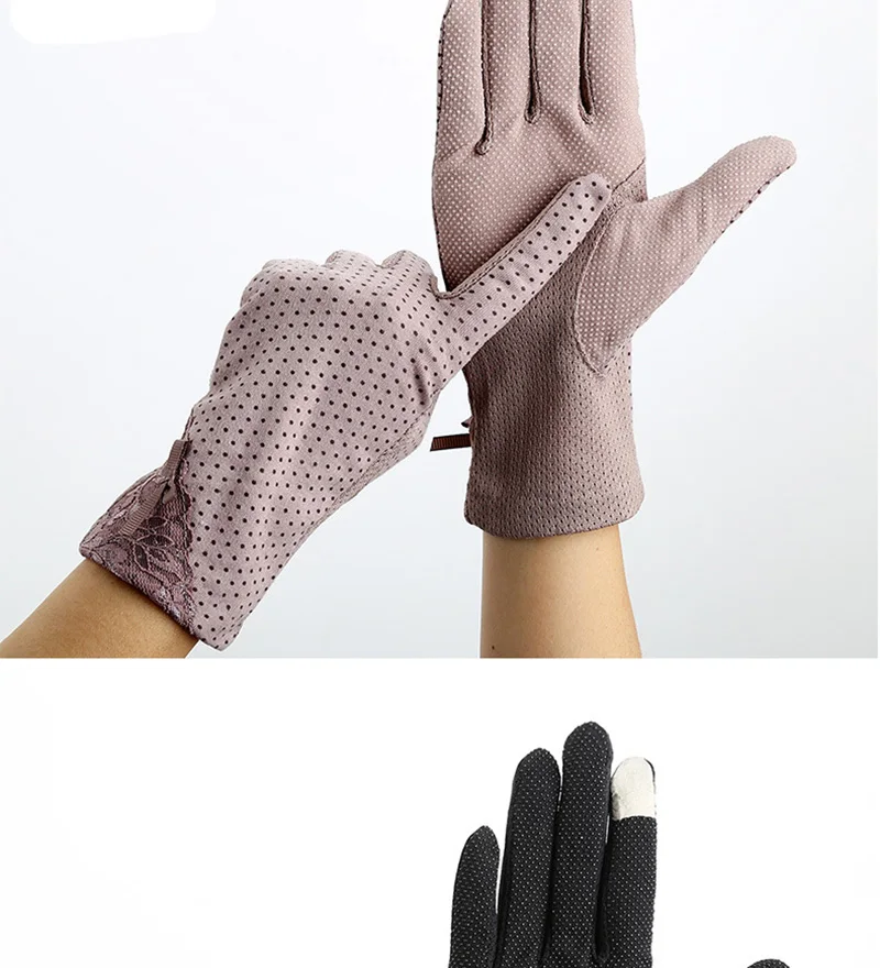 Летние анти-уф противоскользящие сенсорный экран ледяной шелк кружева вождения тонкий раздел все относится к солнцезащитные перчатки женский C50