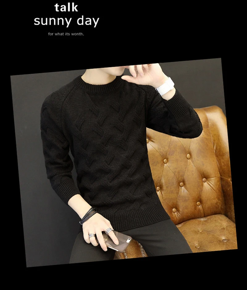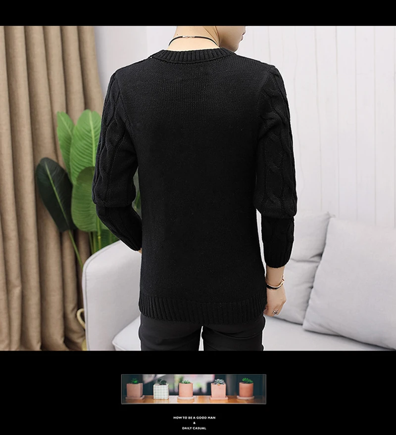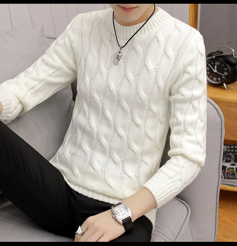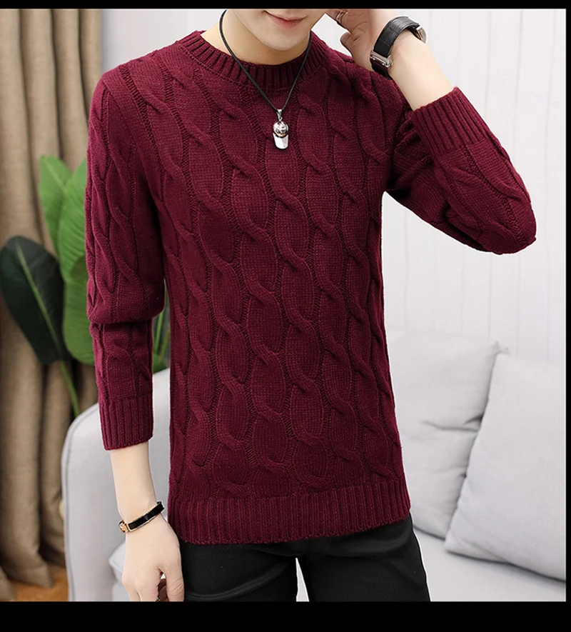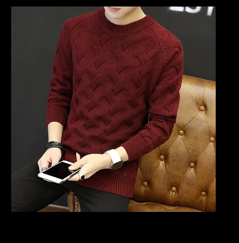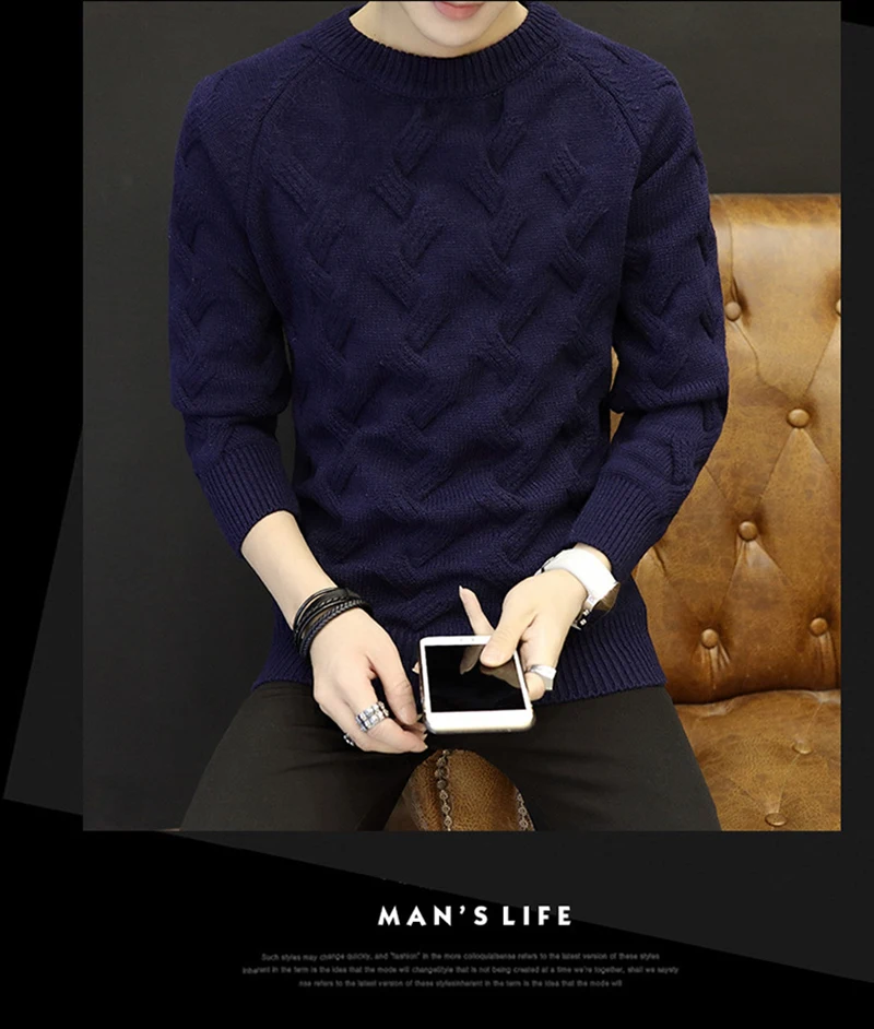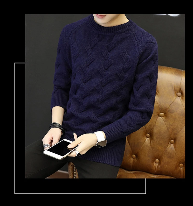 Мужской теплый свитер с круглым вырезом, приталенный трикотажный пуловер с круглым вырезом, уличная одежда для зимы, размера плюс