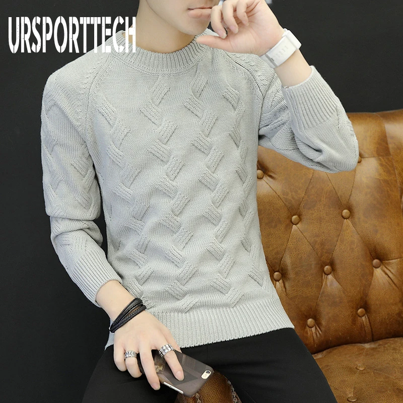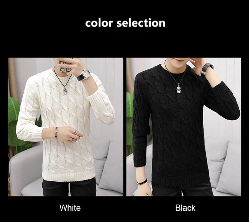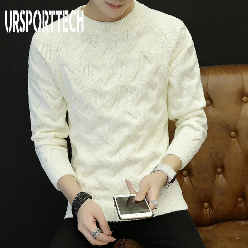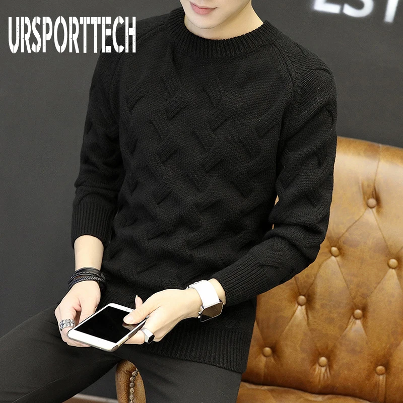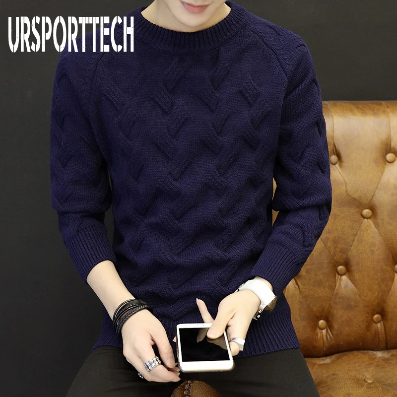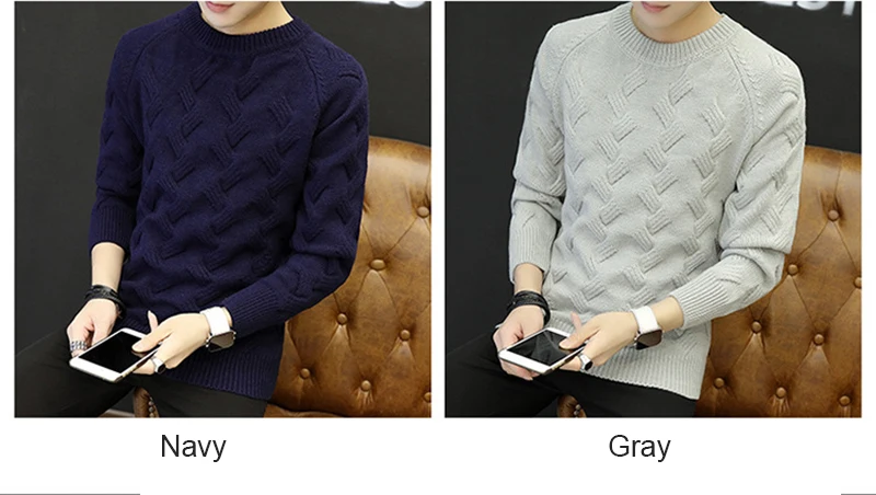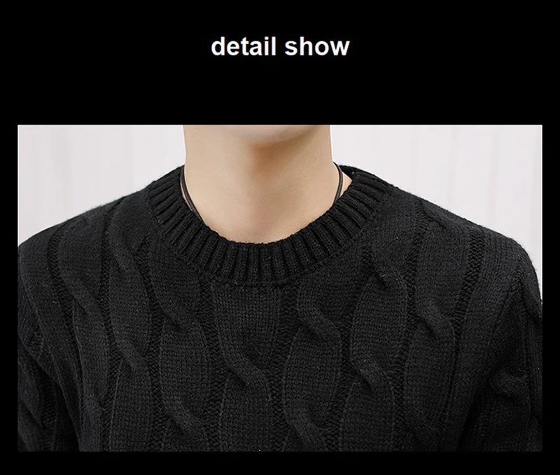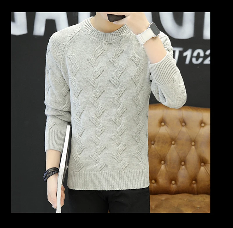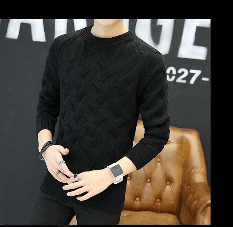 Мужской теплый свитер с круглым вырезом, приталенный трикотажный пуловер с круглым вырезом, уличная одежда для зимы, размера плюс