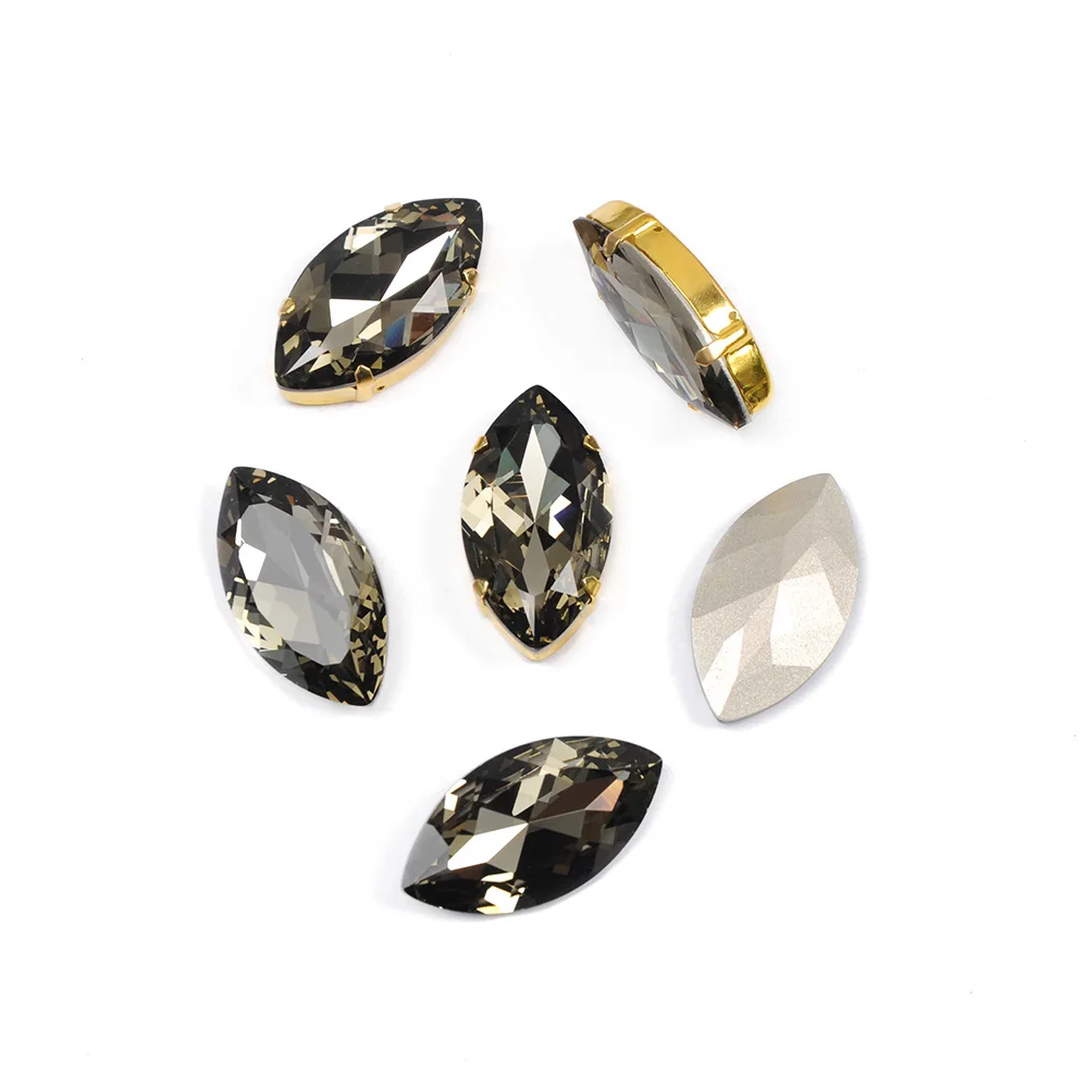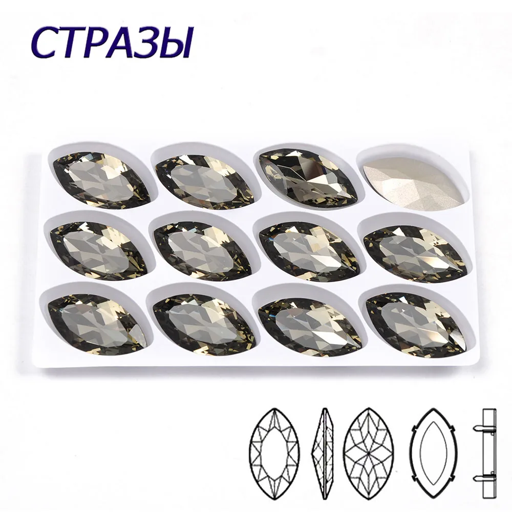 Черные алмазные Стразы CTPA3bI, стеклянные стразы с металлической основой, Пришивные стеклянные камни, ремесла с острым носком, сделай сам, свадебное платье, стразы