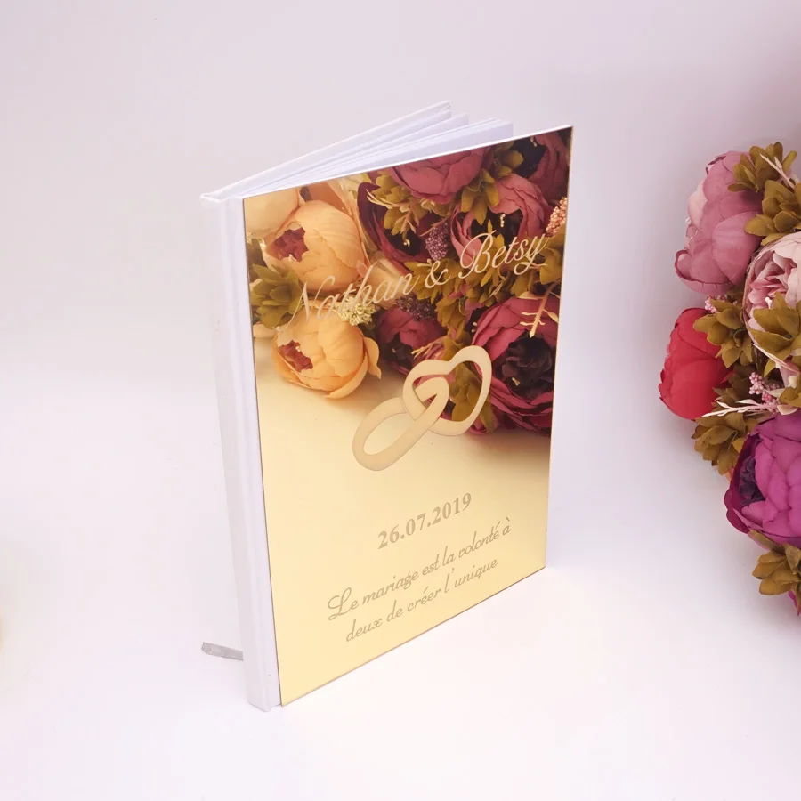 Акриловое зеркало на заказ, двойные кольца, Свадебная Гостевая книга, пустой лист, персонализированное имя, гостевая книга, товары для украшения вечеринки