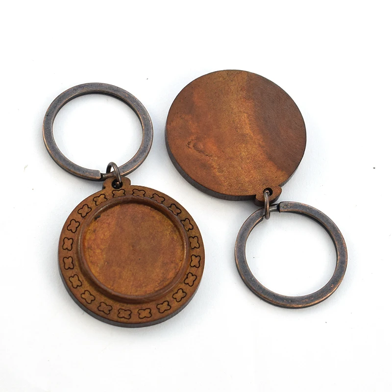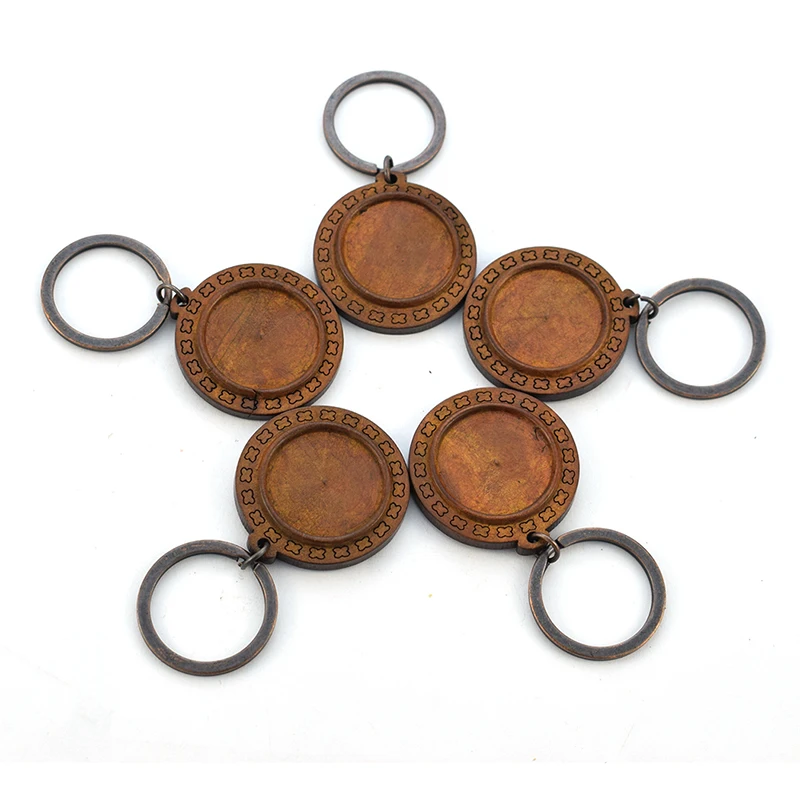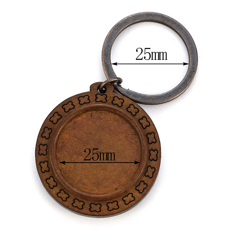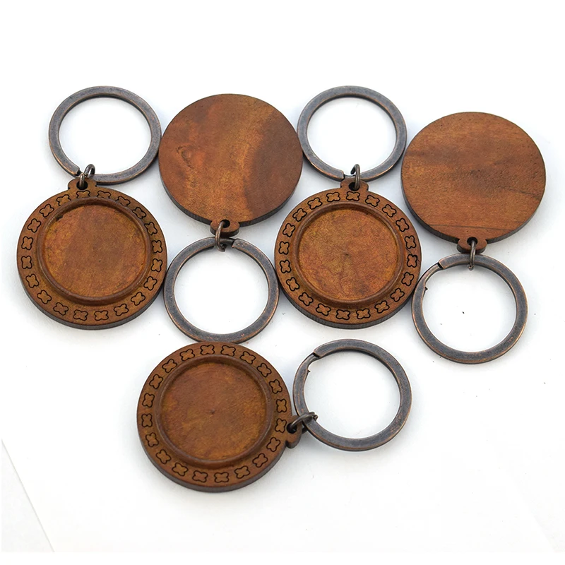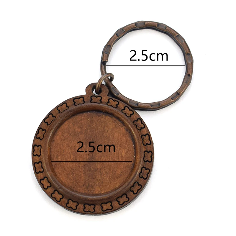 Деревянная основа для ключей ручной работы, 10 шт.лот, пустой брелок для ключей, 25 мм, стеклянный кабошон, аксессуары для изготовления ювелирных изделий