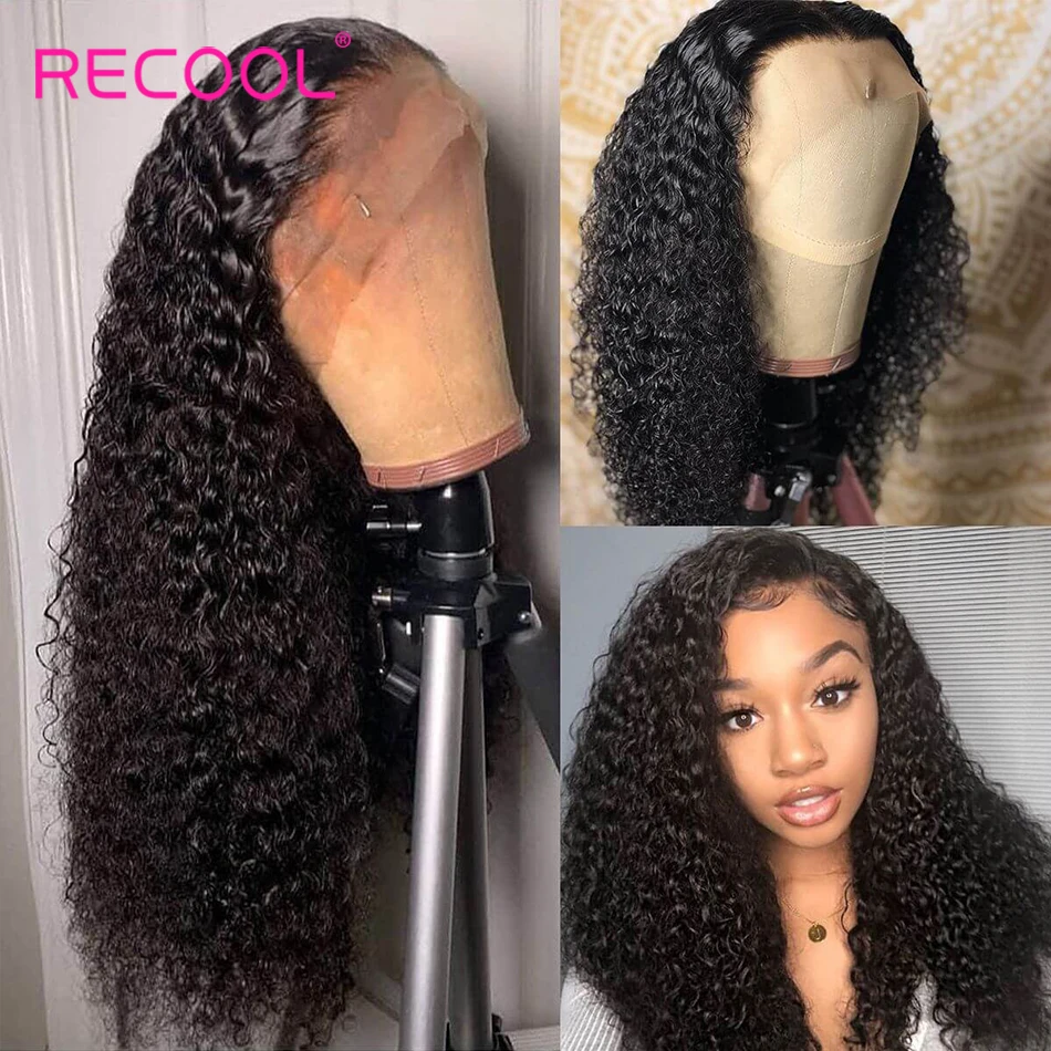 Recool кудрявый парик, кружевные передние человеческие волосы, парики 200 250, плотность 13x4, бразильский короткий Боб, кружевные передние парики, кудрявые человеческие волосы, парик