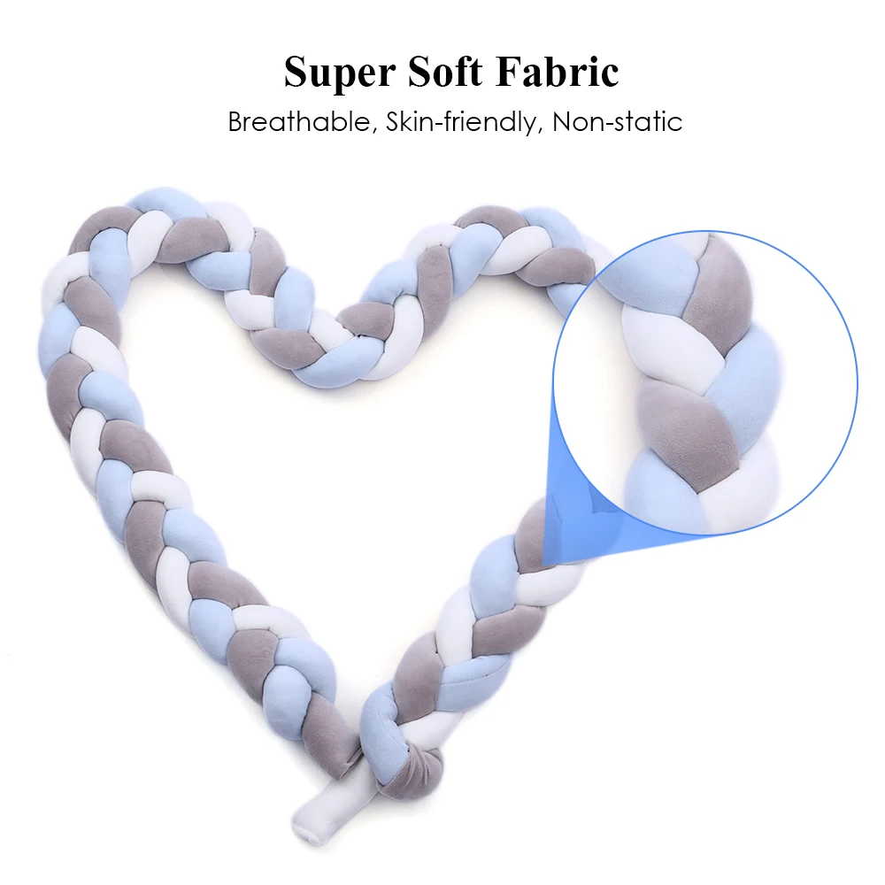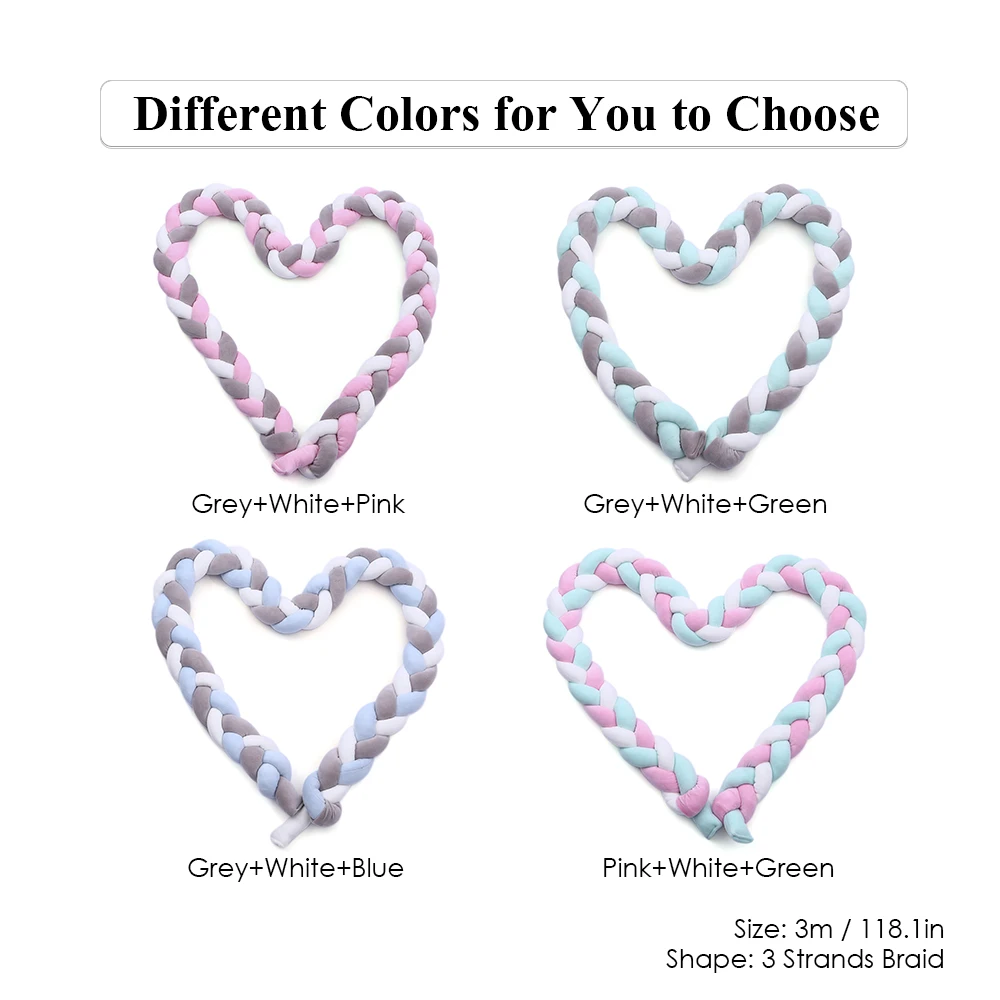 Узел бампера ручной работы сплетен из безопасного материала. Это идеальный способ обновить украшение комнаты вашего ребенка и может легко регулироваться под любую зону комнаты, например, кроватку, пеленальный столик, кровать для малышей. Поможет вам, если ваш малыш закатится в бортики кроватки по ночам или ударится головой или руками во время сна. И это может способствовать способности ребенка визуальной многоцветной стимуляции.Особенности:Дышащая, приятная для кожи и нестатическая хлопковая ткань, прочная и моющаяся.Способствуют максимальному потоку воздуха и снижают риск удушья, безопасны и комфортны для малыша.Мамы могут хорошенько выспаться ночью, потому что способны защитить малыша от скатывания в бортики кроватки или ударов головой или руками во время сна.Можно свободно комбинировать, чтобы уместить вашу кроватку, и легко устанавливать-просто привяжите ленты на забор кроватки.Комфортная мягкость, можно вложить в любую форму по мере необходимости, например, квадратную, прямоугольную, круглую или даже в форме сердца.Также можно использовать в качестве подушки для спины, подушки для сна или даже декора постельного белья, прекрасный подарок для ребенка и мамы.Характеристики:Цвет: серый + белый + розовый/серый + белый + зеленый/серый + белый + синий/розовый + белый + зеленый (опционально)Размер: 3м/118,1 дюймаФорма: коса из 3-х нитейМатериал: супер мягкая ткань хлопок + ПП хлопокПосылка: 30*28*16 см/11,81*11,02 * 6.30inВес посылка: 750 г/26,46 унцииКомплектация:1 * узел-бампер для детской кроватки