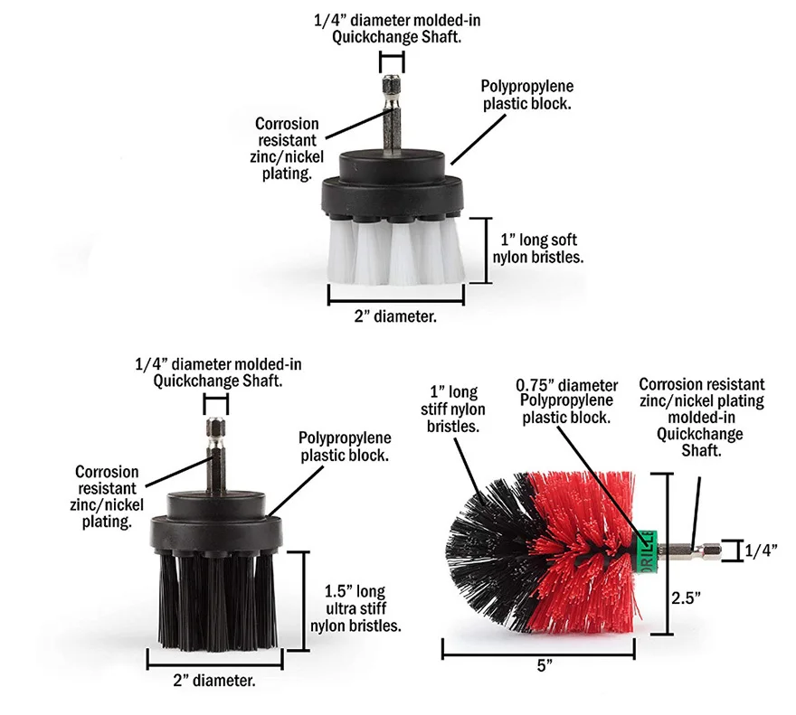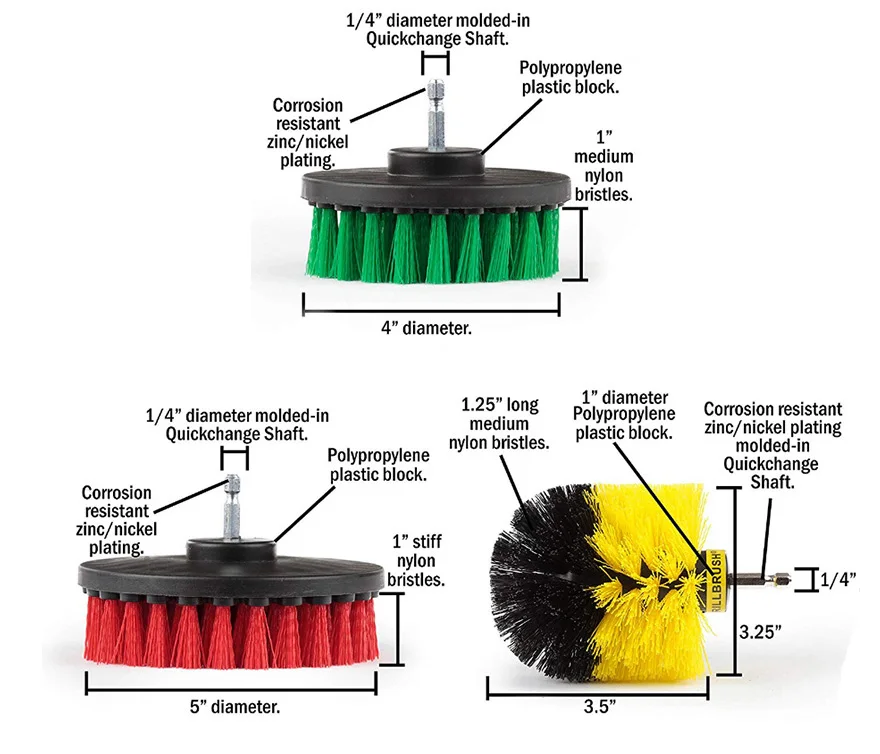 Ottimo prodotto, le setole sono ideali per pulire i cerchioni dell'automobile o moquette