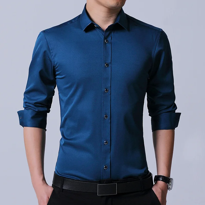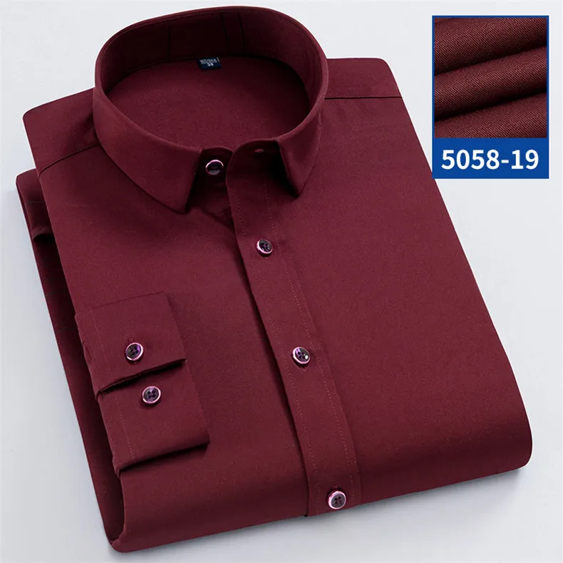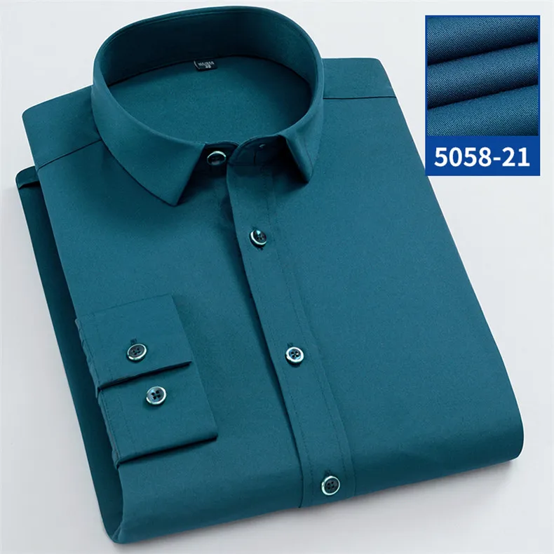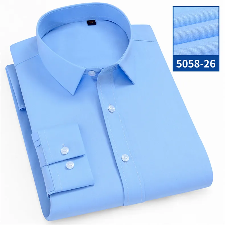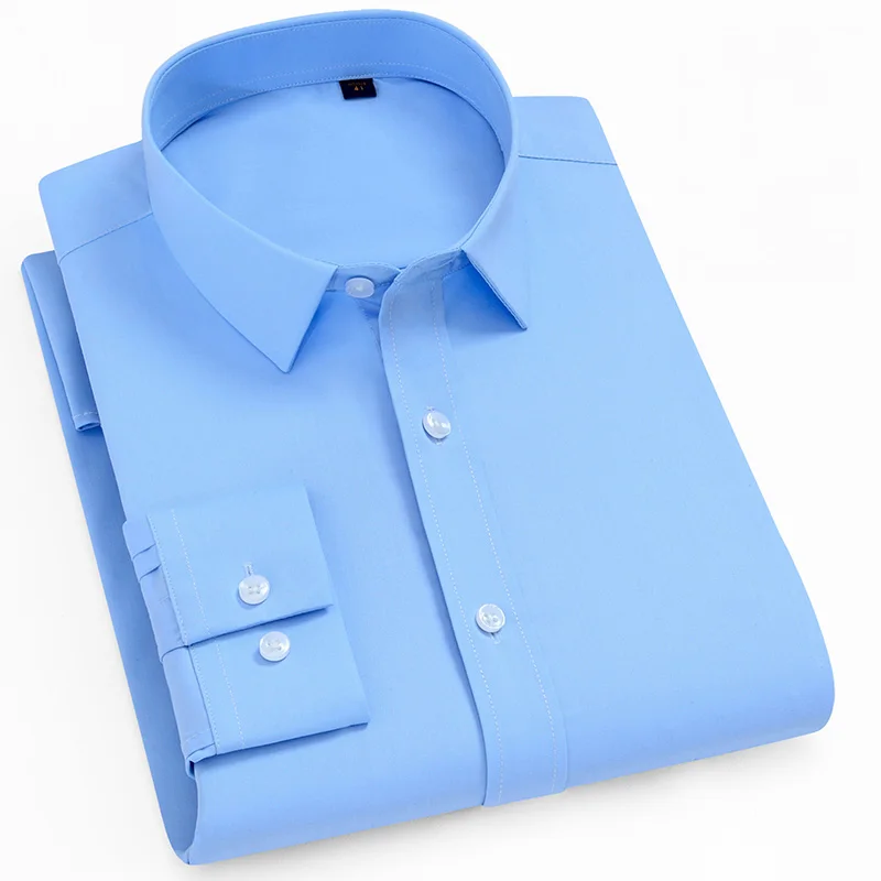Рубашка мужская стрейчевая с длинными рукавами, деловая Повседневная сорочка slim fit, не требует глажки, не садится и не садится, без нагрудного кармана, однотонная, простой уход