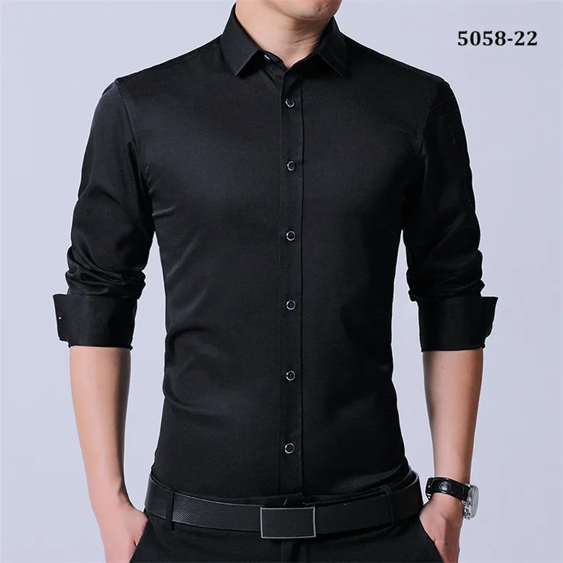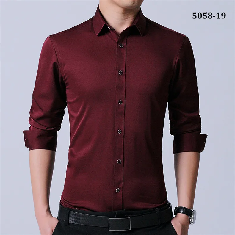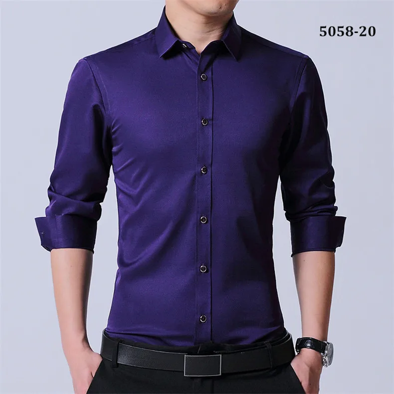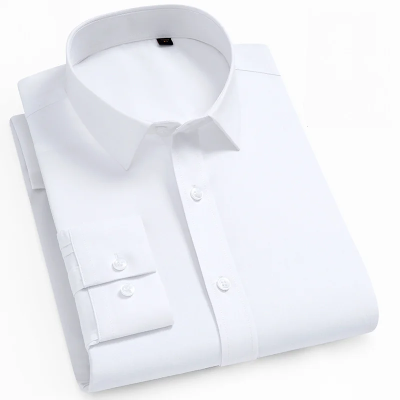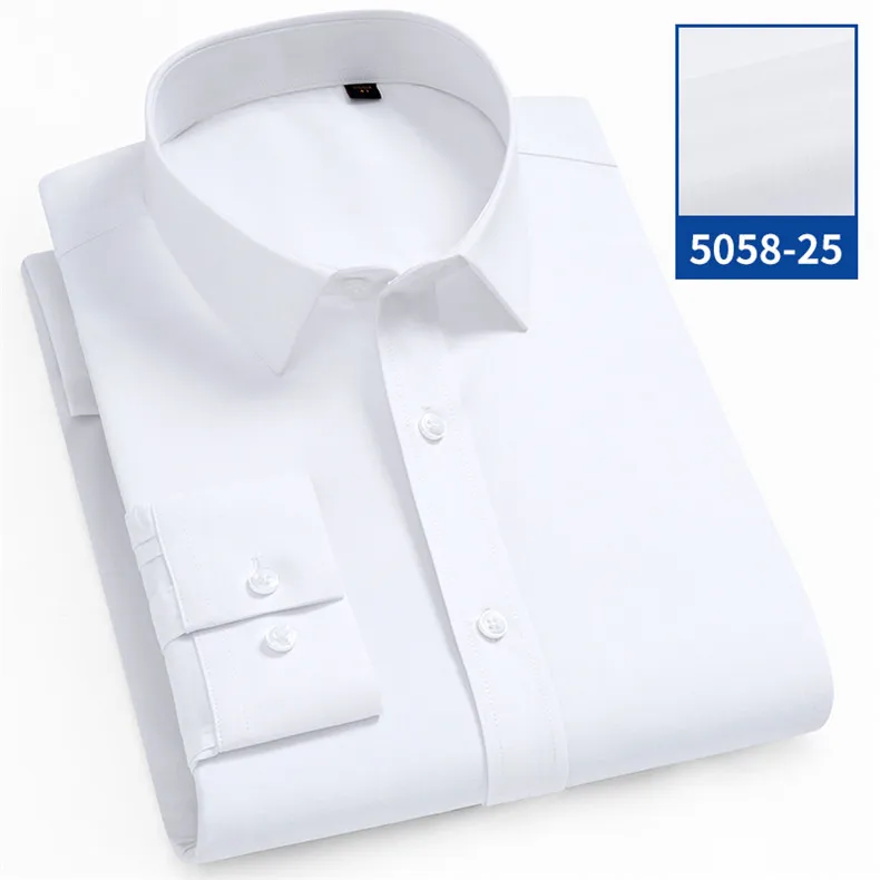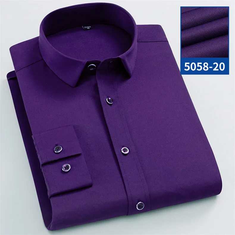 Рубашка мужская стрейчевая с длинными рукавами, деловая Повседневная сорочка slim fit, не требует глажки, не садится и не садится, без нагрудного кармана, однотонная, простой уход
