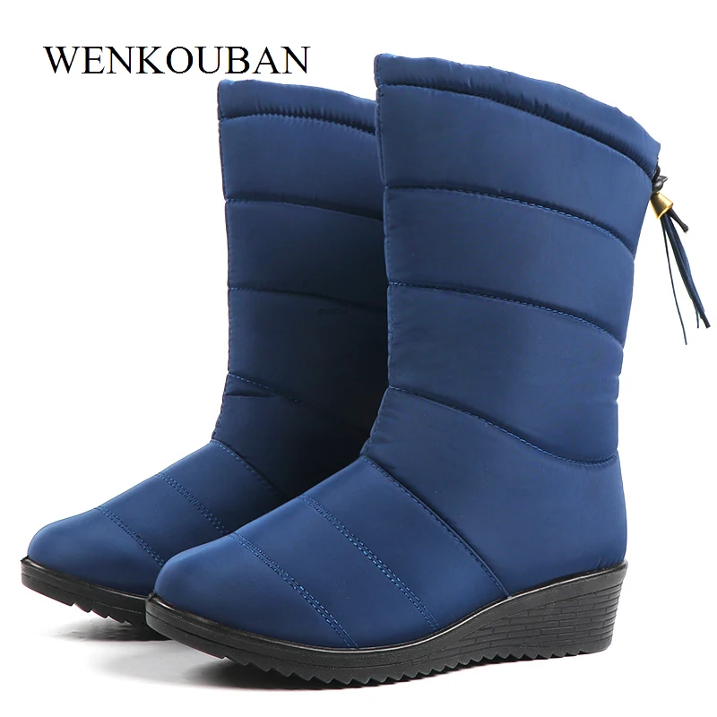 Водонепроницаемые зимние сапоги; Женская обувь; Женские сапоги до середины икры; Теплые женские зимние сапоги на танкетке; Резиновые плюшевые сапоги; Botas Mujer; 2019