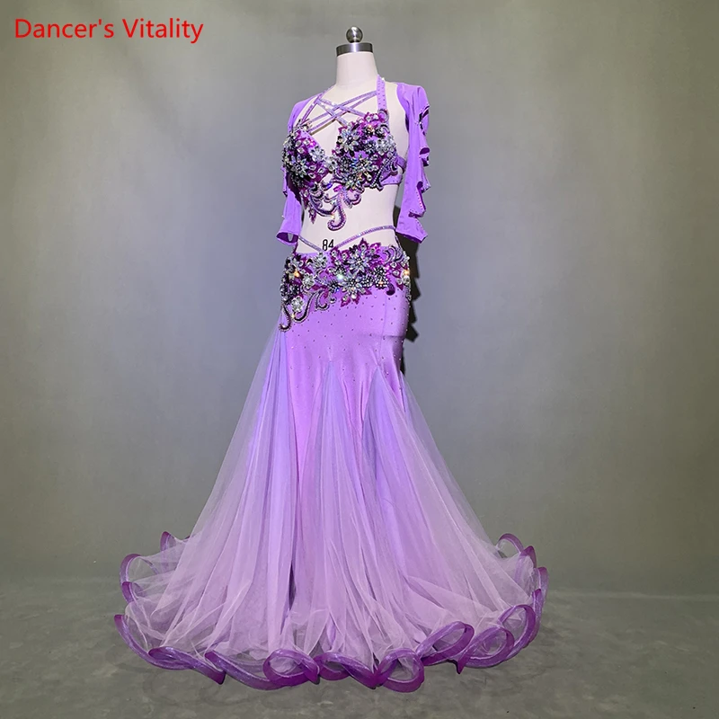 Женский костюм для танца живота, стразы, сетчатый комплект с юбкой в стиле пэчворк