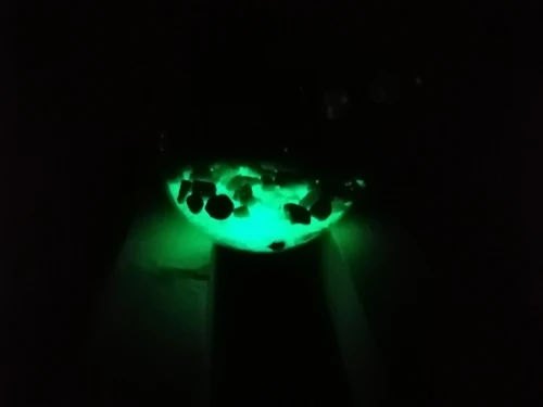 Прикольный порошок. Дети в восторге! Под лампой заряжается, потом светится. В воде тонет. Можно на клей на предметы клеить