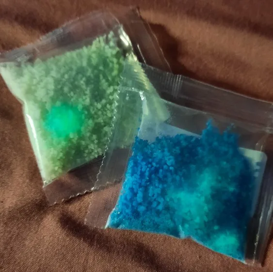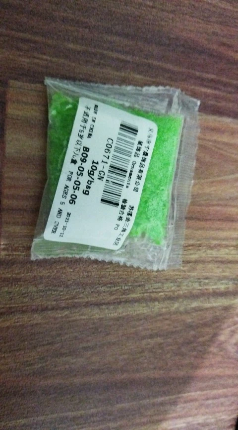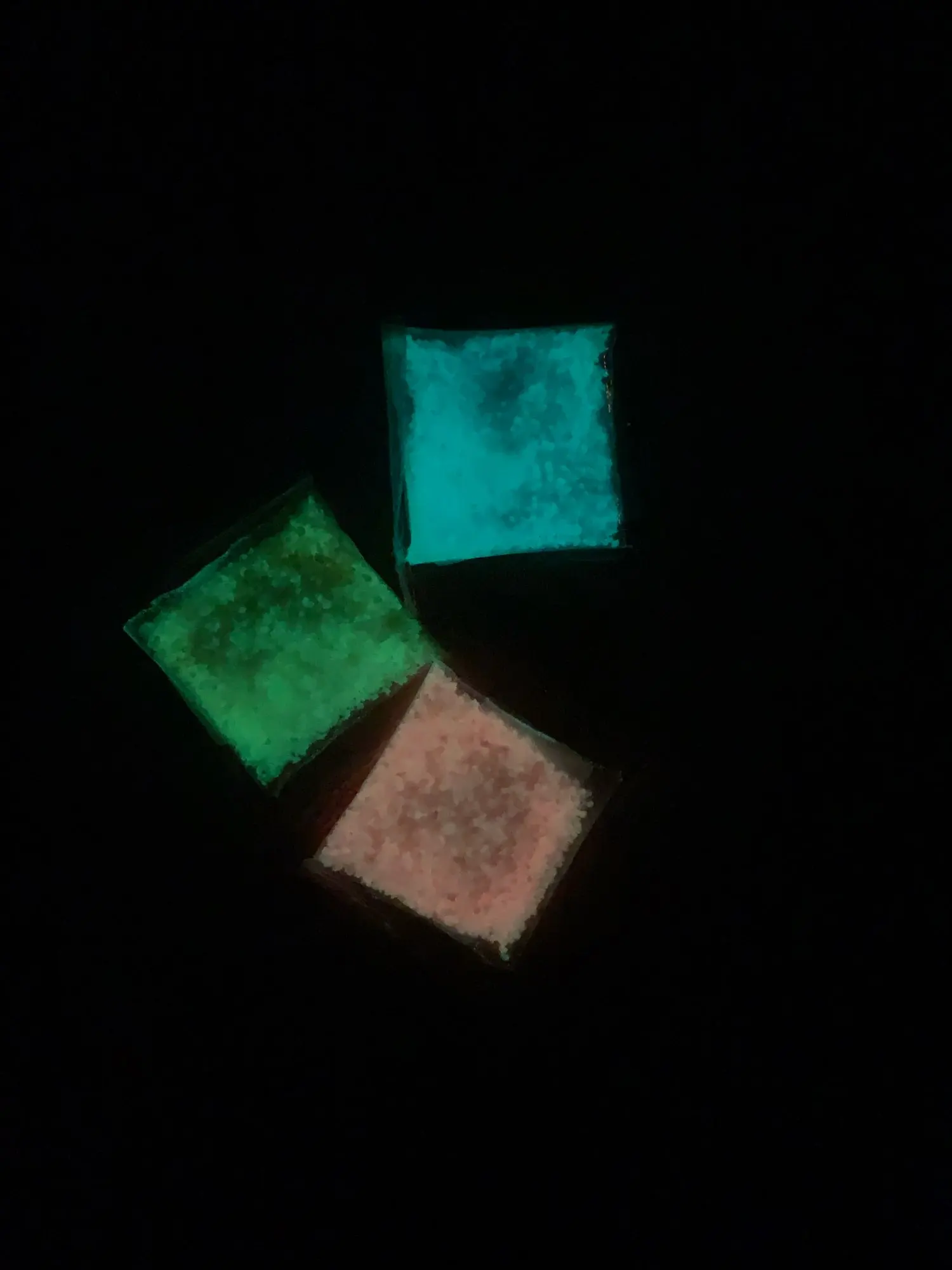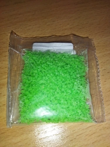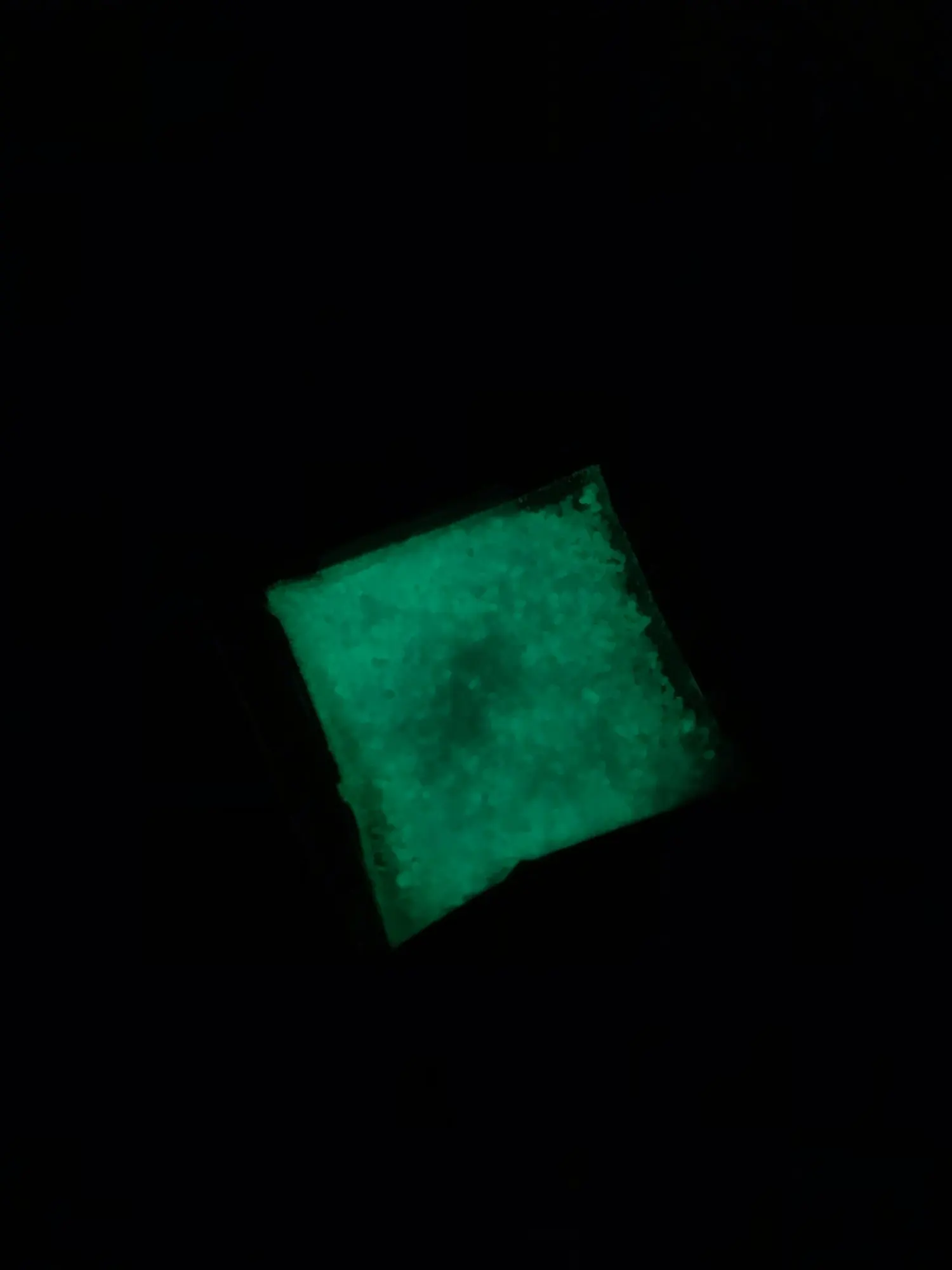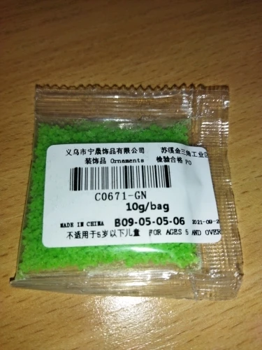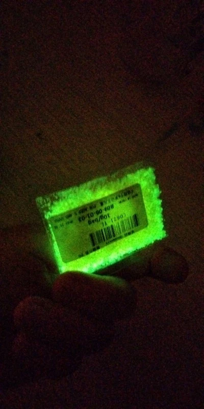 Очень очень очень долго шёл пакетик. Такие мелкие товары нужно брать большим объёмом, а то на мелкие пакетики почтальоны не обращают внимание, наверно. По товару: рассыпчатый порошок неоднородными гранулами, но светится всё хорошо.