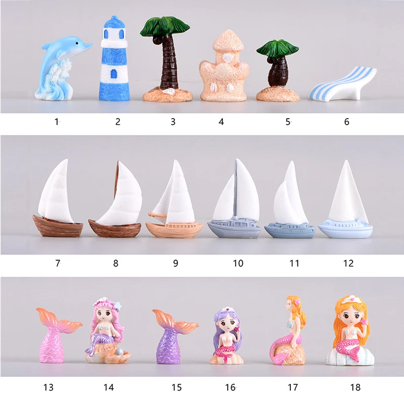 Миниатюрный Рождественский Пляж океан Русалка китовый хвост парусная яхта Маяк дельфин из полимерного материала украшение для дома аксессуары