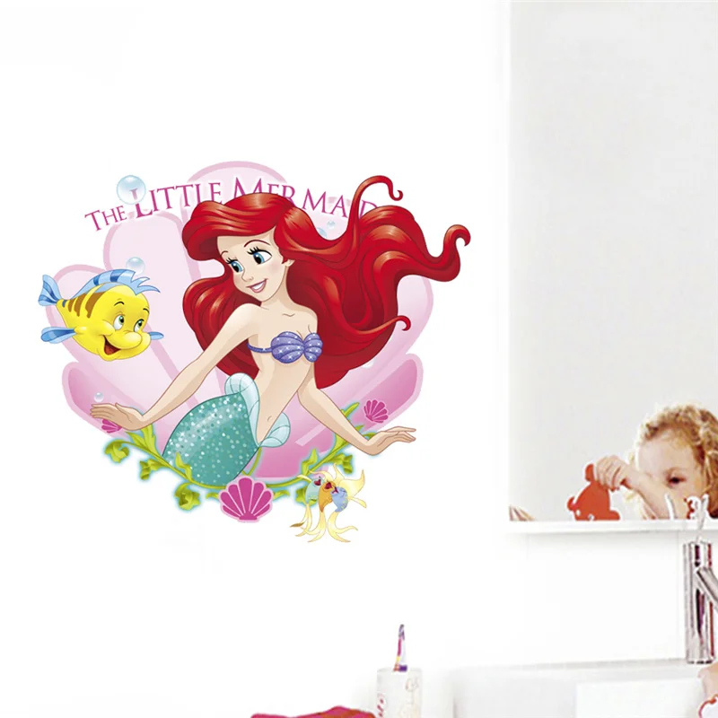 Маленькая Русалочка Ариэль, принцесса, настенные наклейки для ванной комнаты, украшение для дома, 3d плакат из ПВХ, настенные картинки для детской комнаты
