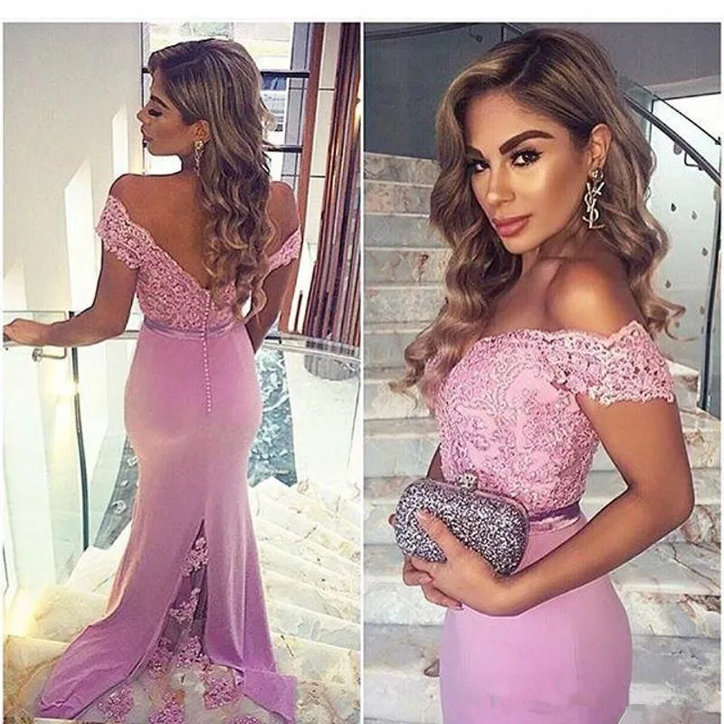 Недорогие розовые платья подружки невесты до 50 с юбкой-годе, с открытыми плечами, аппликацией из бисера, Длинные свадебные платья для женщин
